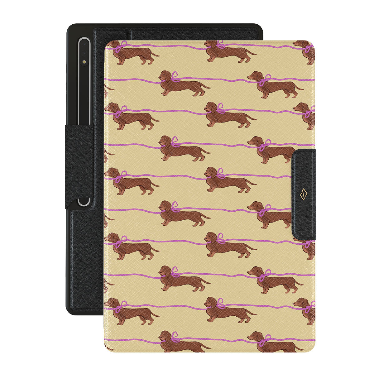 This Samsung Galaxy Tab S8 Ultra design doesn’t believe in time, only vibes. It features sassy sausage dogs with bows who, like you, are running 15 minutes behind—and blaming Mercury.