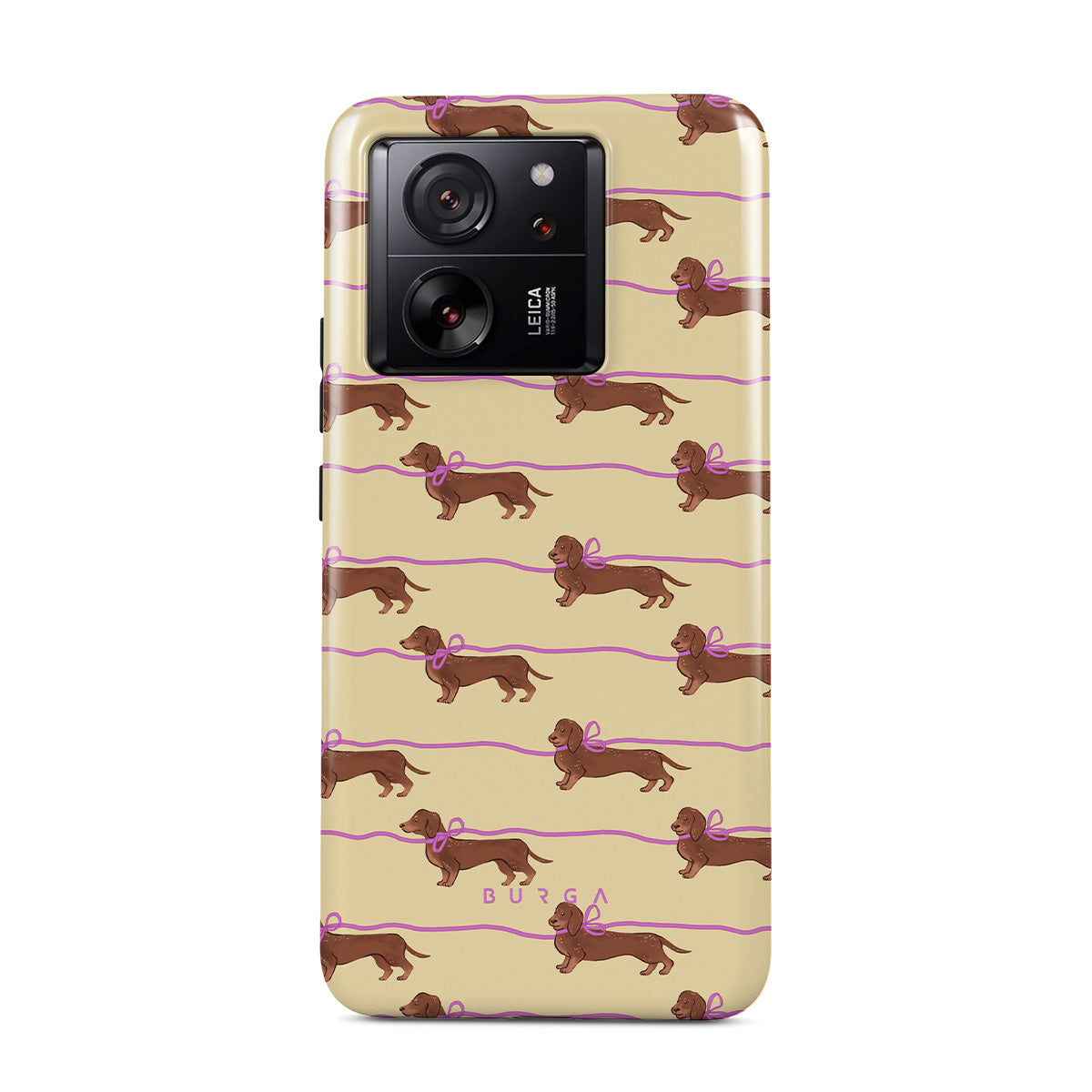 This Xiaomi 13T Pro phone case design doesn’t believe in time, only vibes. It features sassy sausage dogs with bows who, like you, are running 15 minutes behind—and blaming Mercury.