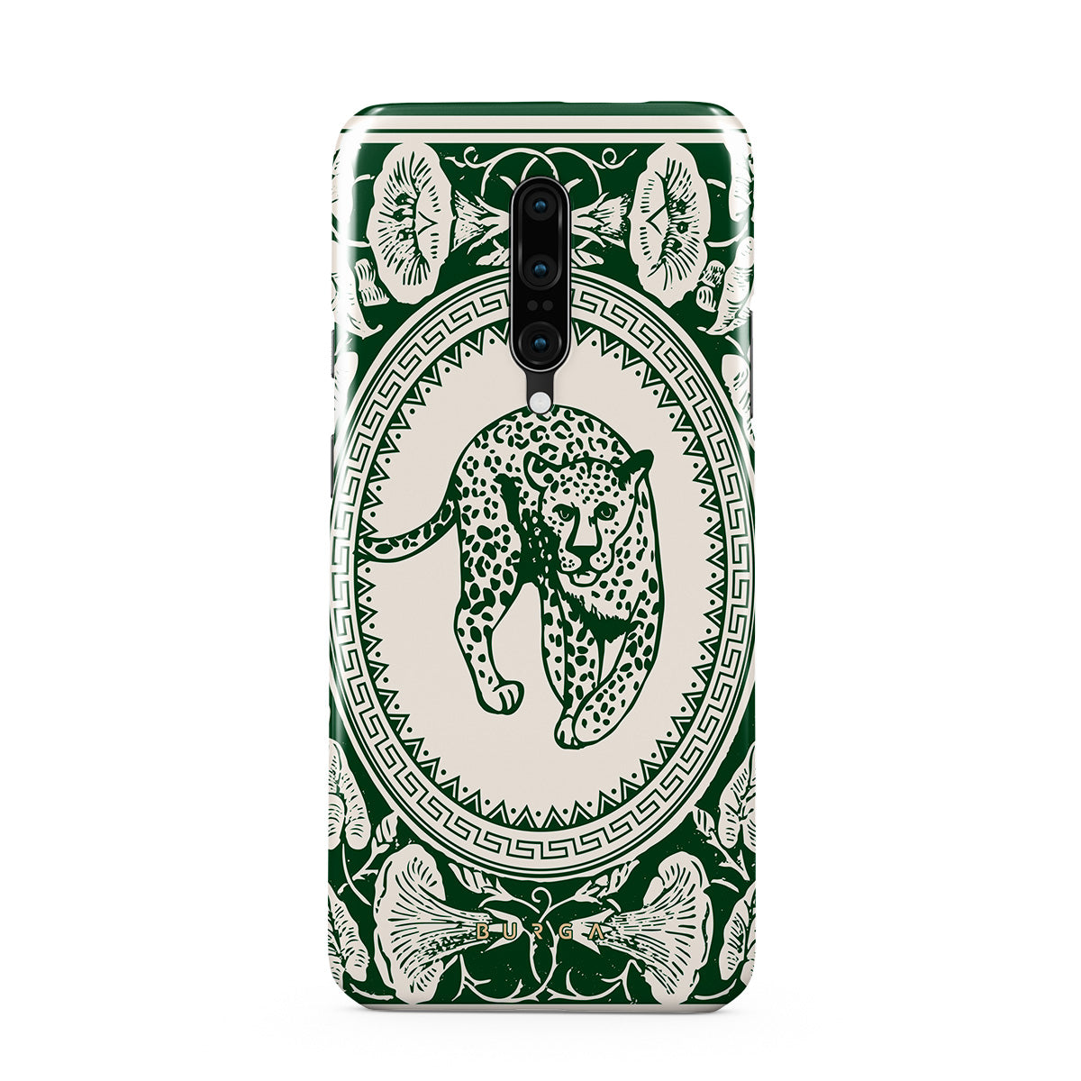 Our Antique OnePlus 7 Pro / 7T Pro phone case designa nude canvas kissed by refined green contours, painting an eternal saga of elegance. Enthroned at its center is a regal leopard embraced by a tender floral caress. A nod to timeless opulence, this design captures the essence of vintage prestige.