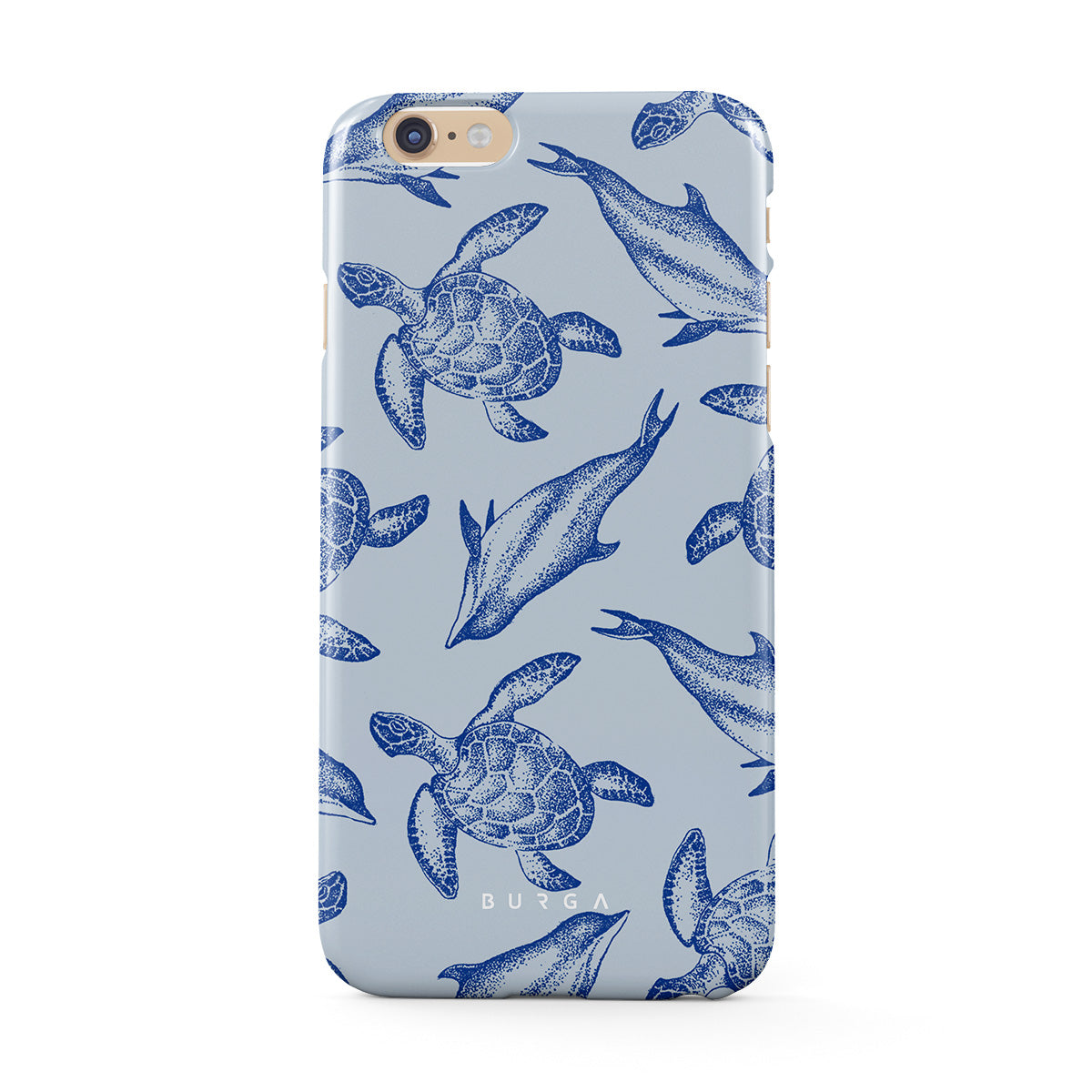 A beautiful design featuring lively turtles and dolphins playfully dancing in serene light blue water. Dive into the ocean's rhythm with our Aquatic Dance iPhone 6 / 6S case.