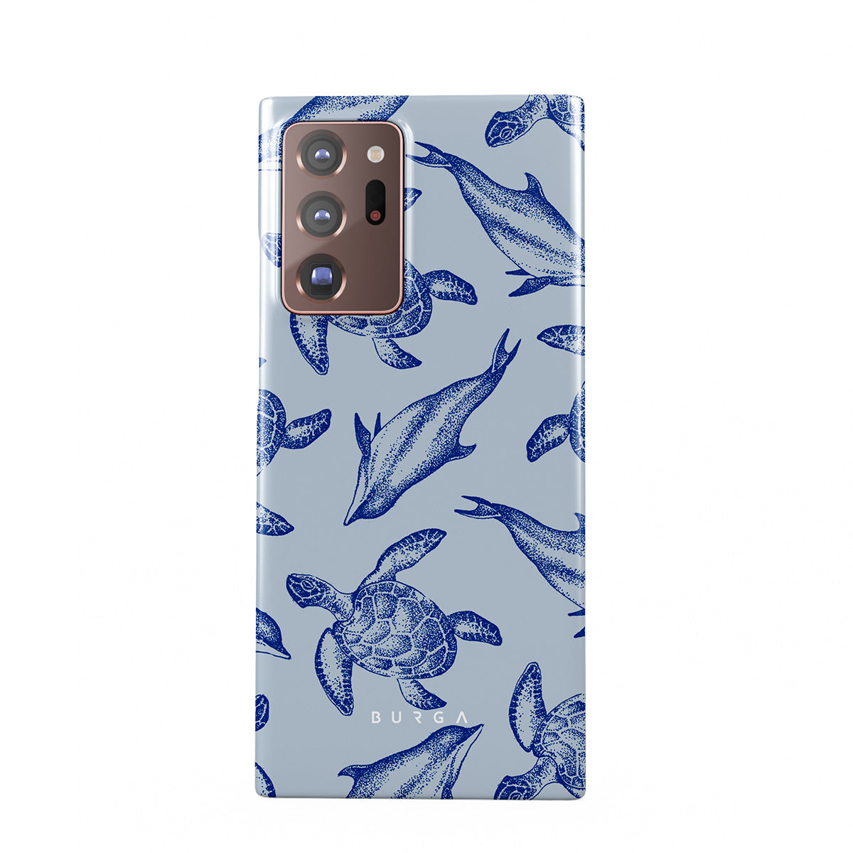 A beautiful design featuring lively turtles and dolphins playfully dancing in serene light blue water. Dive into the ocean's rhythm with our Aquatic Dance Samsung Galaxy Note 20 Ultra 4G / 5G case.