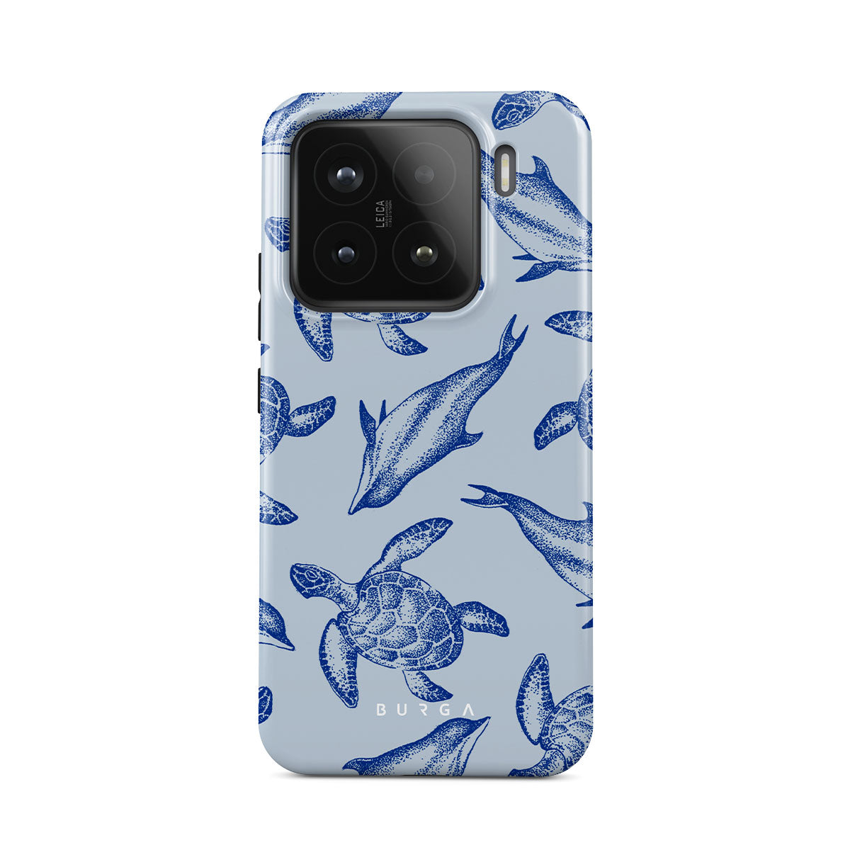 A beautiful design featuring lively turtles and dolphins playfully dancing in serene light blue water. Dive into the ocean's rhythm with our Aquatic Dance Xiaomi 15 Case.