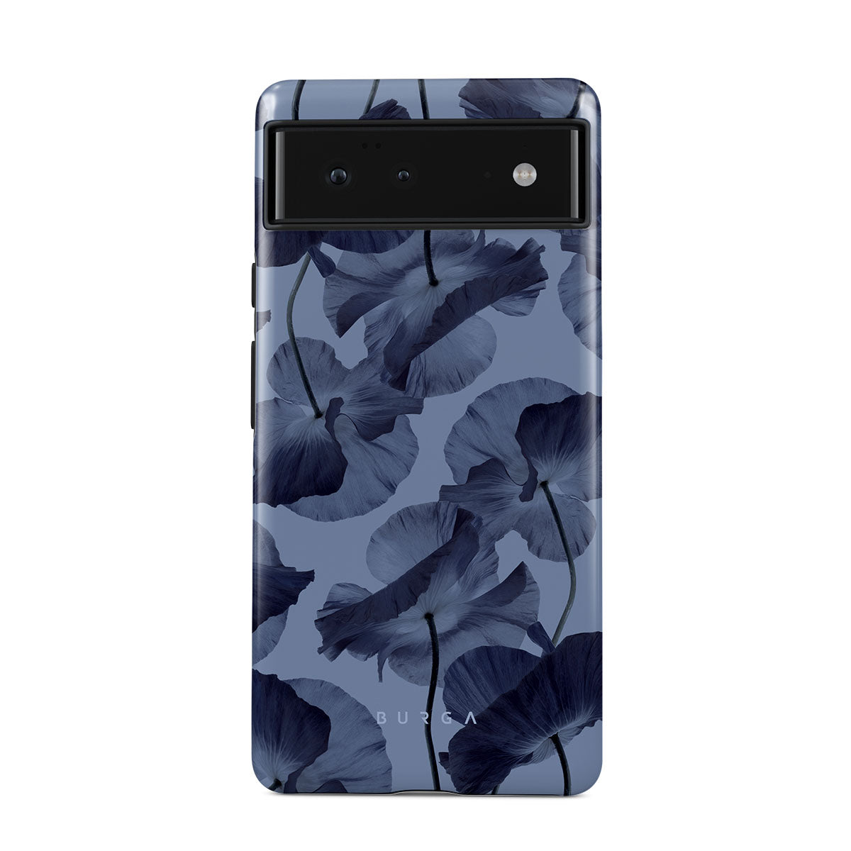 This Google Pixel 6 phone case design blends seamlessly into any workspace, offering a polished yet mysterious touch. Mixing deep blue flowers and a bright blue background, our Archives pattern is perfect for those who like their style to whisper, not shout.