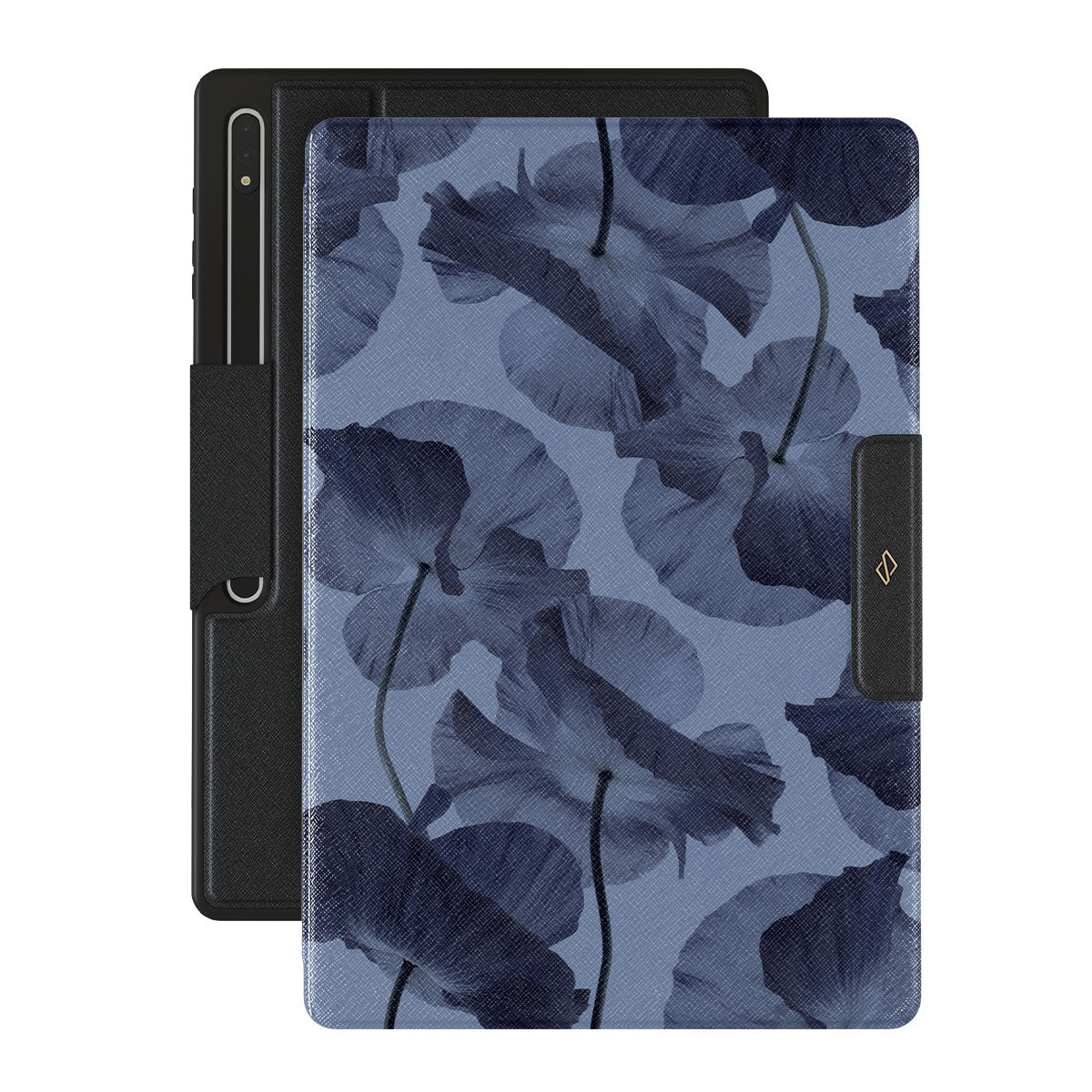 This Samsung Galaxy Tab S9 Ultra folio case design blends seamlessly into any workspace, offering a polished yet mysterious touch. Mixing deep blue flowers and a bright blue background, our Archives pattern is perfect for those who like their style to whisper, not shout.