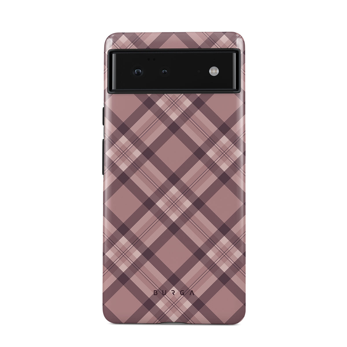 Made for those who hustle hard and look sharp. Our ASAP Google Pixel 6a phone case design features a sleek rosé-gray background with diagonal plaid in soft grey and deep pink—mixing modern flair with understated elegance. For the pros who know that style and speed go hand-in-hand.