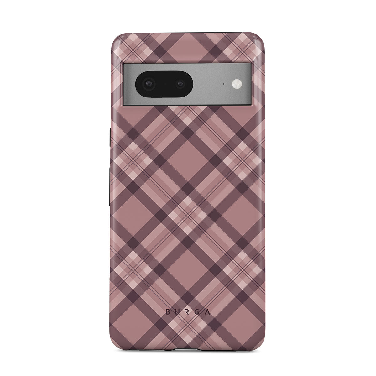 Made for those who hustle hard and look sharp. Our ASAP Google Pixel 7 phone case design features a sleek rosé-gray background with diagonal plaid in soft grey and deep pink—mixing modern flair with understated elegance. For the pros who know that style and speed go hand-in-hand.