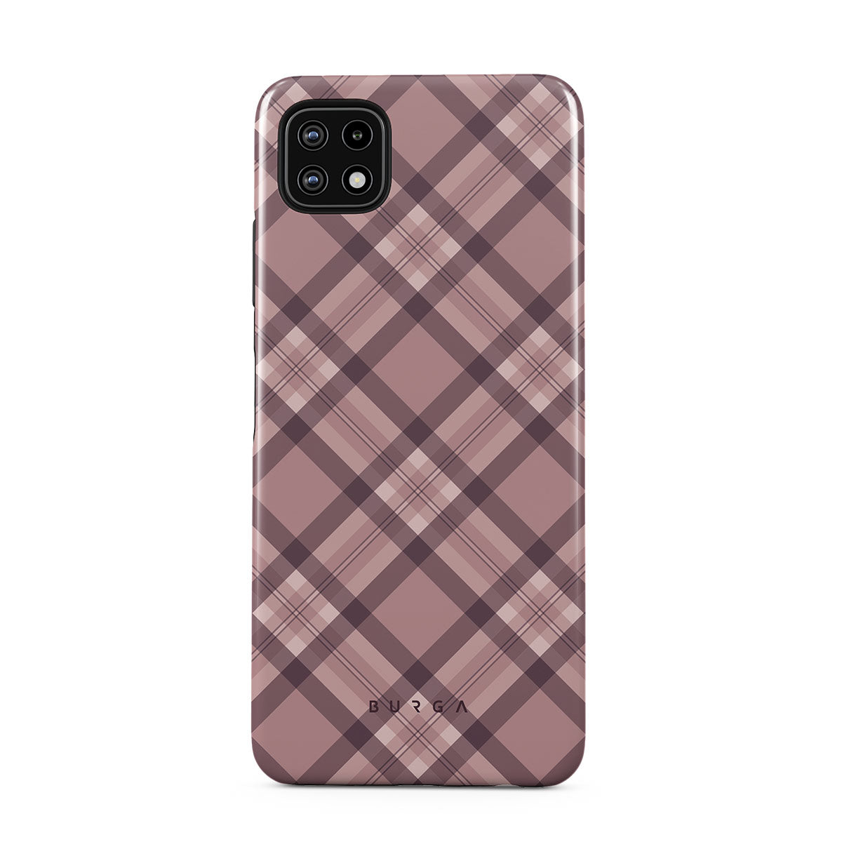 Made for those who hustle hard and look sharp. Our ASAP Samsung Galaxy A22 5G phone case design features a sleek rosé-gray background with diagonal plaid in soft grey and deep pink—mixing modern flair with understated elegance. For the pros who know that style and speed go hand-in-hand.