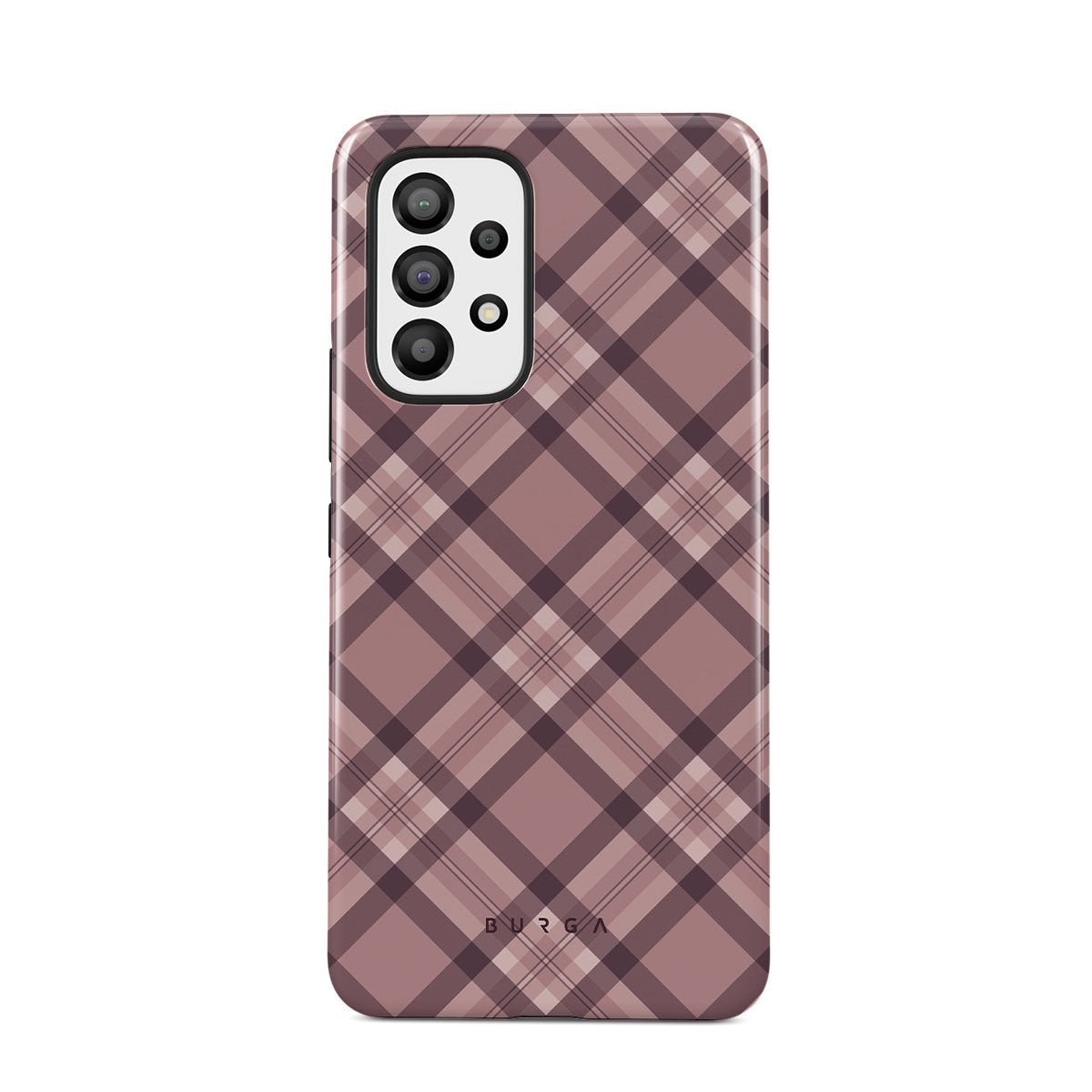 Made for those who hustle hard and look sharp. Our ASAP Samsung Galaxy A23 4G / 5G phone case design features a sleek rosé-gray background with diagonal plaid in soft grey and deep pink—mixing modern flair with understated elegance. For the pros who know that style and speed go hand-in-hand.