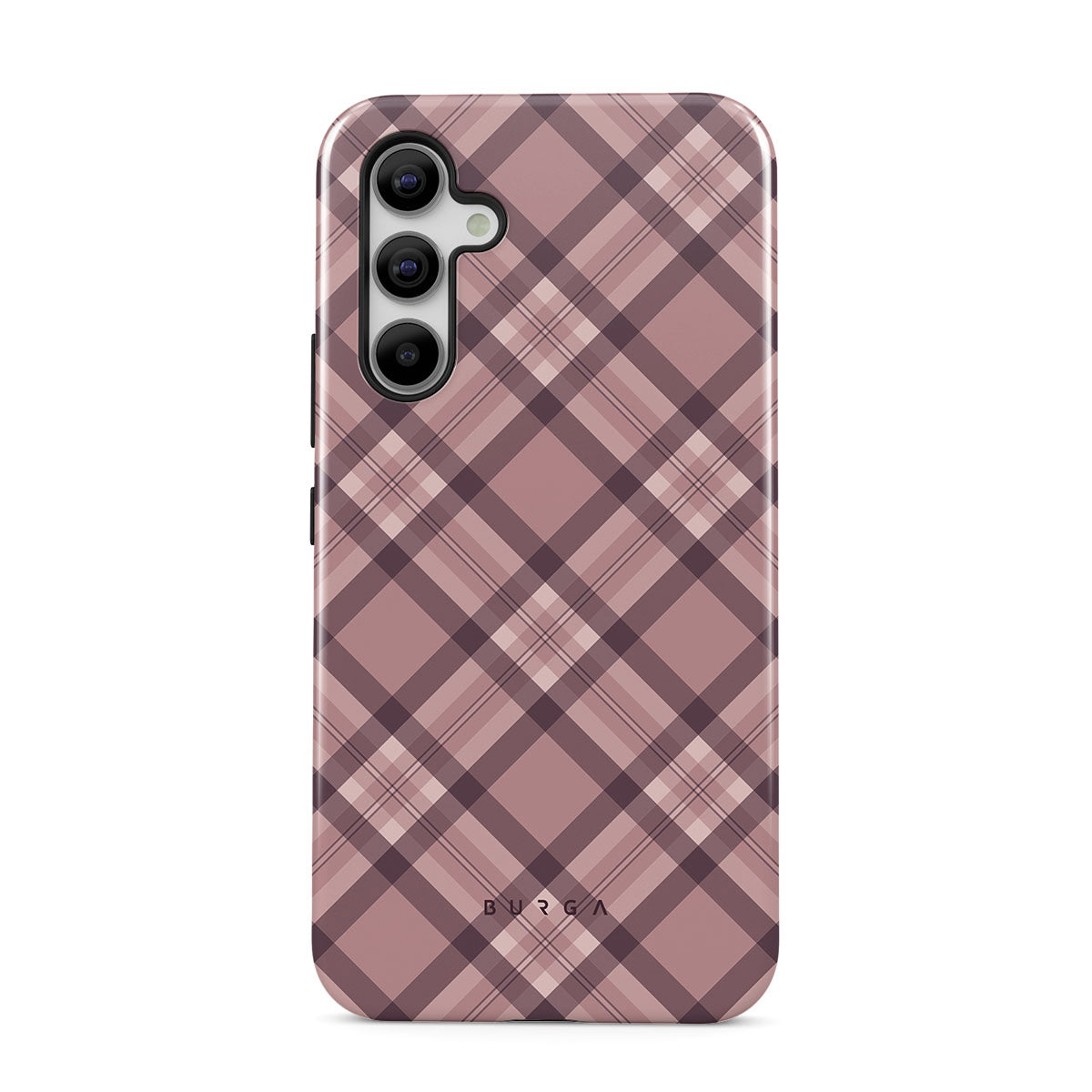 Made for those who hustle hard and look sharp. Our ASAP Samsung Galaxy A54 phone case design features a sleek rosé-gray background with diagonal plaid in soft grey and deep pink—mixing modern flair with understated elegance. For the pros who know that style and speed go hand-in-hand.