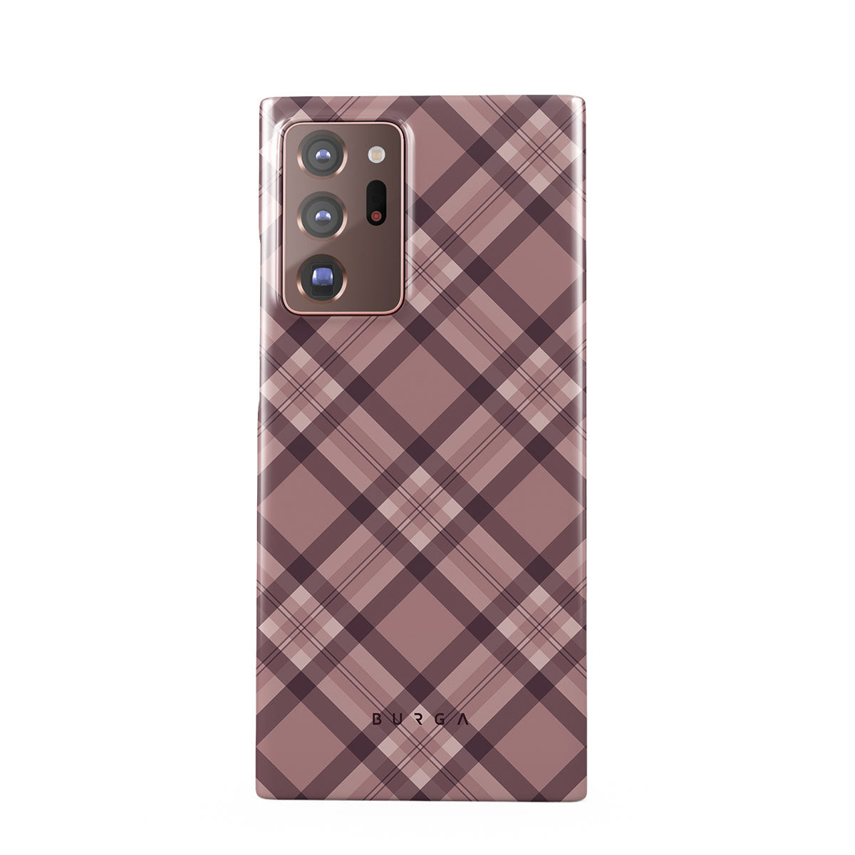 Made for those who hustle hard and look sharp. Our ASAP Samsung Galaxy Note 20 Ultra 4G / 5G phone case design features a sleek rosé-gray background with diagonal plaid in soft grey and deep pink—mixing modern flair with understated elegance. For the pros who know that style and speed go hand-in-hand.