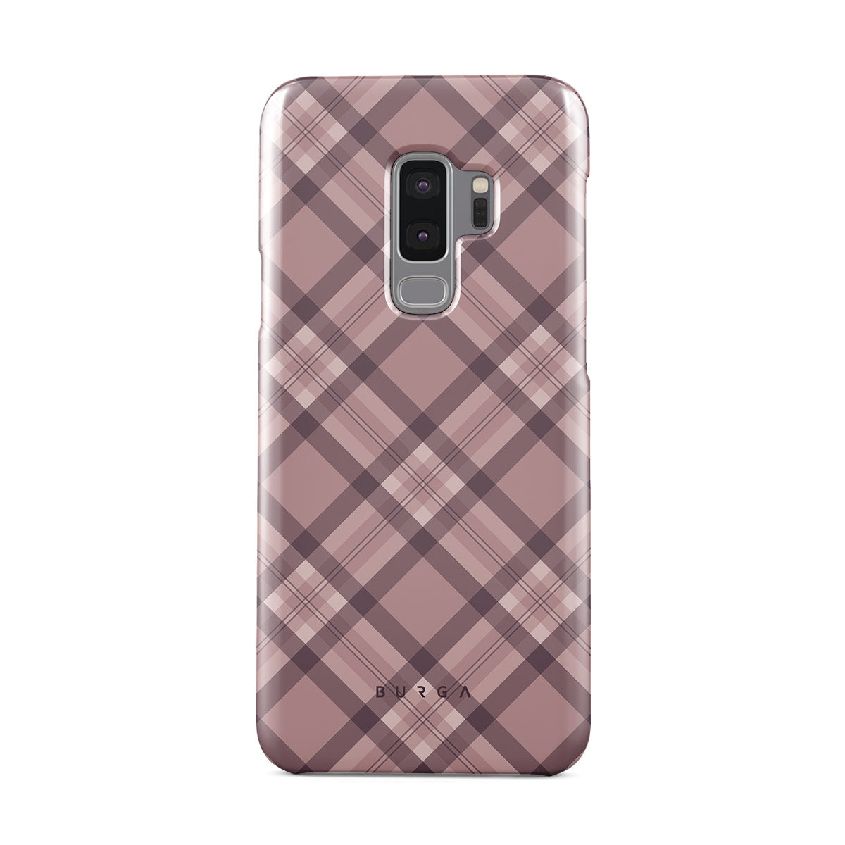 Made for those who hustle hard and look sharp. Our ASAP Samsung Galaxy S9 Plus phone case design features a sleek rosé-gray background with diagonal plaid in soft grey and deep pink—mixing modern flair with understated elegance. For the pros who know that style and speed go hand-in-hand.
