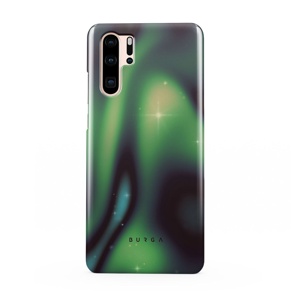 Nature's magic shines through in a mysterious display of lights. Delicate colors intertwine in a ballet of beauty and grace. Poetic harmony is captured with each swirl. It feels as if you're holding a piece of the night sky. Experience the serene grandeur of the Aurora Huawei P30 Pro phone case design.