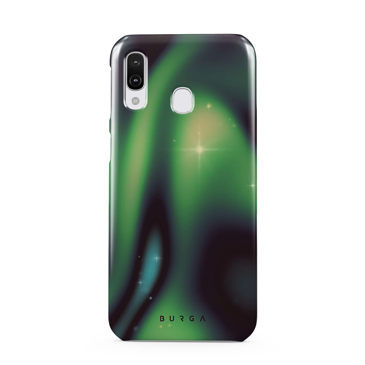 Nature's magic shines through in a mysterious display of lights. Delicate colors intertwine in a ballet of beauty and grace. Poetic harmony is captured with each swirl. It feels as if you're holding a piece of the night sky. Experience the serene grandeur of the Aurora Samsung Galaxy A40 phone case design.