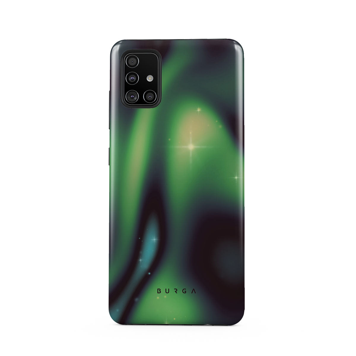 Nature's magic shines through in a mysterious display of lights. Delicate colors intertwine in a ballet of beauty and grace. Poetic harmony is captured with each swirl. It feels as if you're holding a piece of the night sky. Experience the serene grandeur of the Aurora Samsung Galaxy A51 4G phone case design.