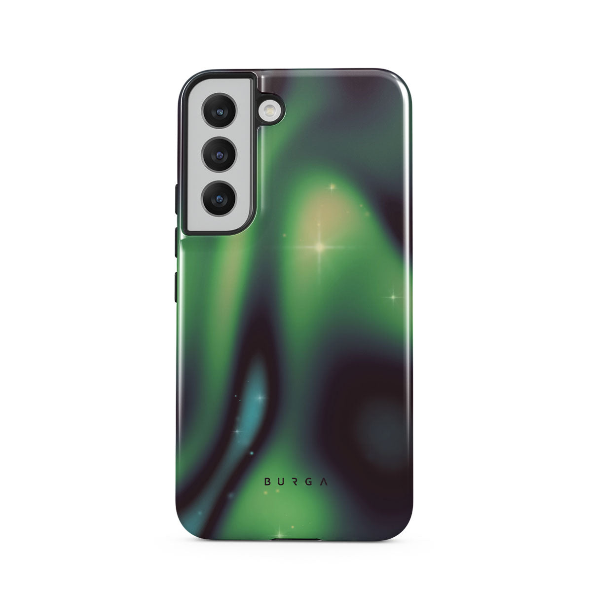 Nature's magic shines through in a mysterious display of lights. Delicate colors intertwine in a ballet of beauty and grace. Poetic harmony is captured with each swirl. It feels as if you're holding a piece of the night sky. Experience the serene grandeur of the Aurora Samsung Galaxy S22 phone case design.