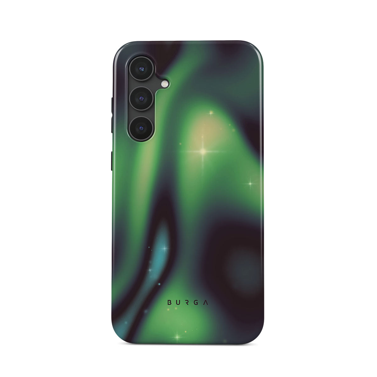 Nature's magic shines through in a mysterious display of lights. Delicate colors intertwine in a ballet of beauty and grace. Poetic harmony is captured with each swirl. It feels as if you're holding a piece of the night sky. Experience the serene grandeur of the Aurora Samsung Galaxy S23 FE phone case design.