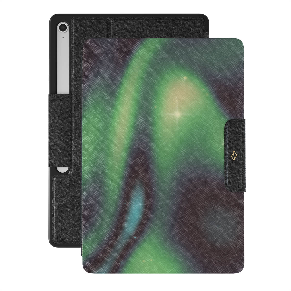 Nature's magic shines through in a mysterious display of lights. Delicate colors intertwine in a ballet of beauty and grace. Poetic harmony is captured with each swirl. It feels as if you're holding a piece of the night sky. Experience the serene grandeur of the Aurora folio case design.