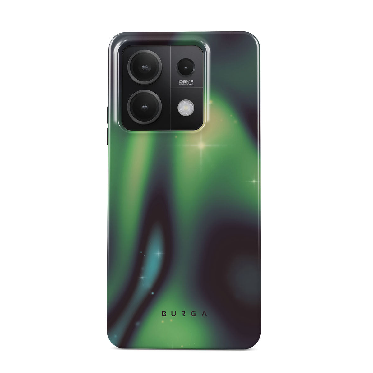 Nature's magic shines through in a mysterious display of lights. Delicate colors intertwine in a ballet of beauty and grace. Poetic harmony is captured with each swirl. It feels as if you're holding a piece of the night sky. Experience the serene grandeur of the Aurora Xiaomi Redmi Note 13 5G phone case design.