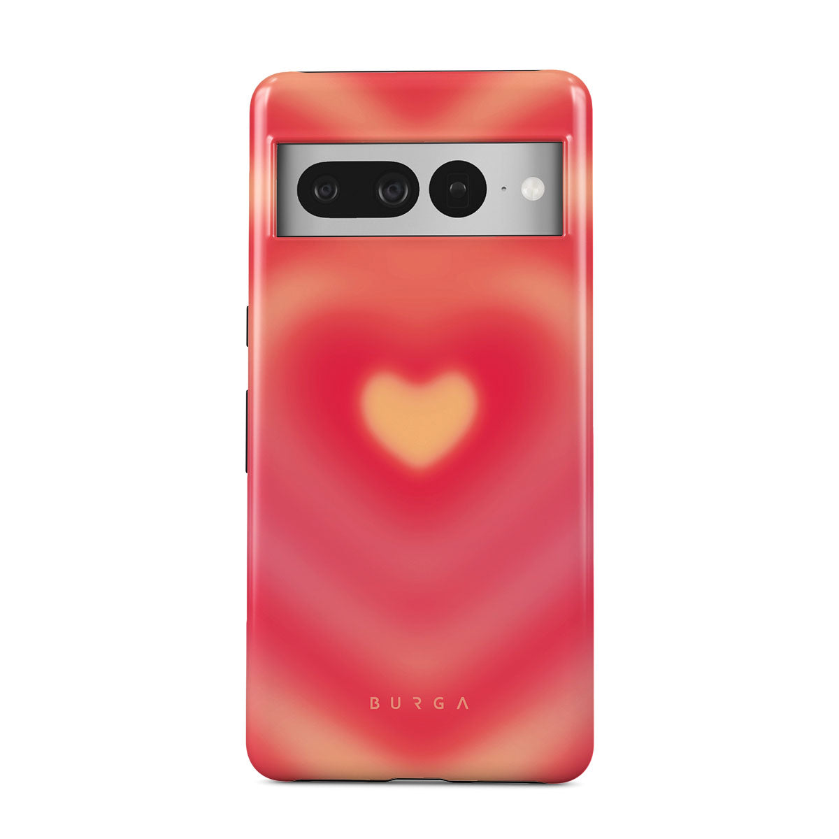 Feel the warmth of Awakening. With its glowing pink-orange shades and a heart at the center, this design is an emblem of one's inner essence. The Awakening Google Pixel 7 Pro phone case design reminds us of the soul's luminous rebirth, capturing the spirit of the Aura Collection and igniting the magic within.