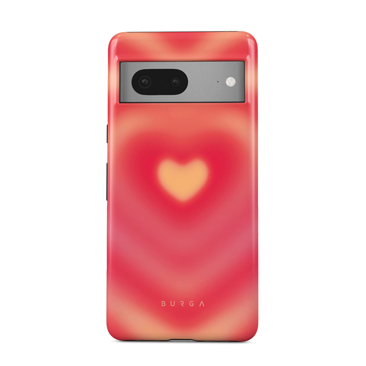 Feel the warmth of Awakening. With its glowing pink-orange shades and a heart at the center, this design is an emblem of one's inner essence. The Awakening Google Pixel 7a phone case design reminds us of the soul's luminous rebirth, capturing the spirit of the Aura Collection and igniting the magic within.