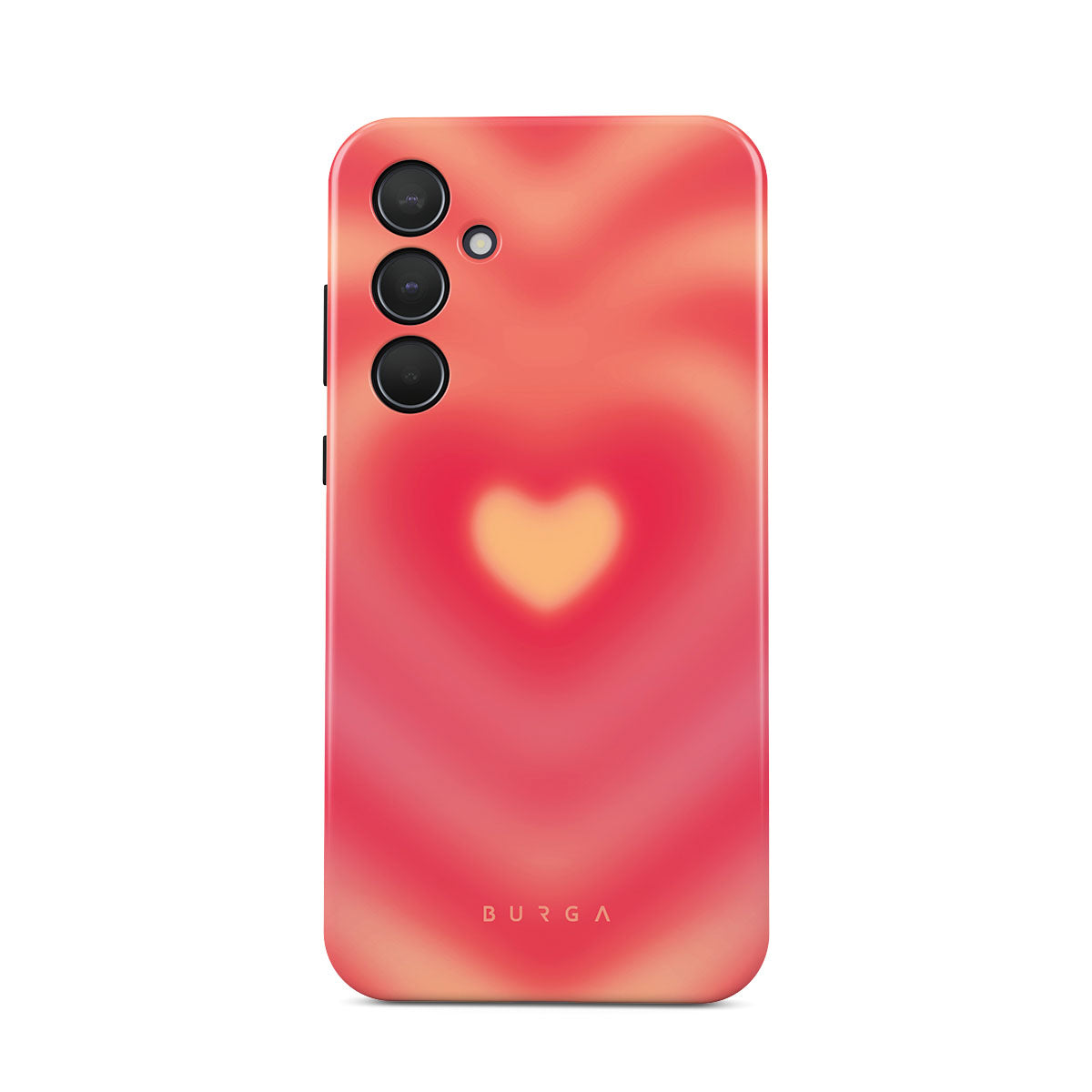 Feel the warmth of Awakening. With its glowing pink-orange shades and a heart at the center, this design is an emblem of one's inner essence. The Awakening Samsung Galaxy A35 phone case design reminds us of the soul's luminous rebirth, capturing the spirit of the Aura Collection and igniting the magic within.