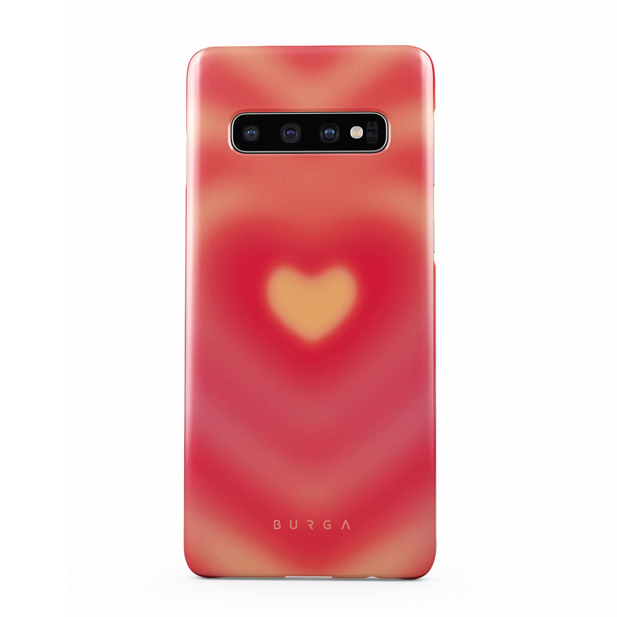 Feel the warmth of Awakening. With its glowing pink-orange shades and a heart at the center, this design is an emblem of one's inner essence. The Awakening Samsung Galaxy S10 Plus phone case design reminds us of the soul's luminous rebirth, capturing the spirit of the Aura Collection and igniting the magic within.