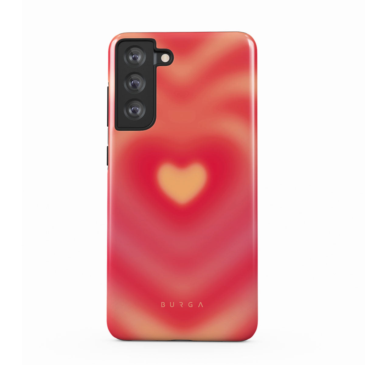 Feel the warmth of Awakening. With its glowing pink-orange shades and a heart at the center, this design is an emblem of one's inner essence. The Awakening Samsung Galaxy S21 FE phone case design reminds us of the soul's luminous rebirth, capturing the spirit of the Aura Collection and igniting the magic within.