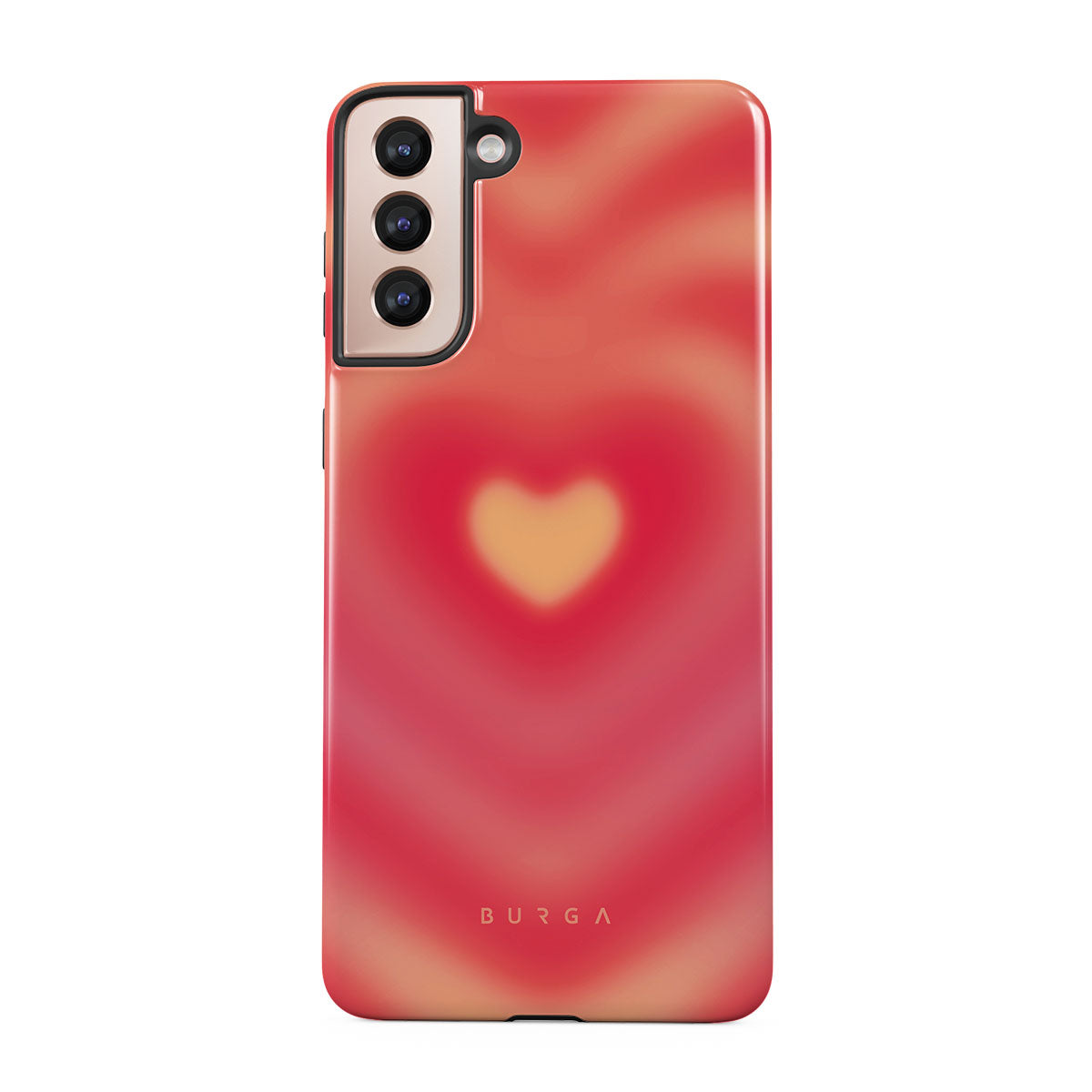Feel the warmth of Awakening. With its glowing pink-orange shades and a heart at the center, this design is an emblem of one's inner essence. The Awakening Samsung Galaxy S21 Plus phone case design reminds us of the soul's luminous rebirth, capturing the spirit of the Aura Collection and igniting the magic within.