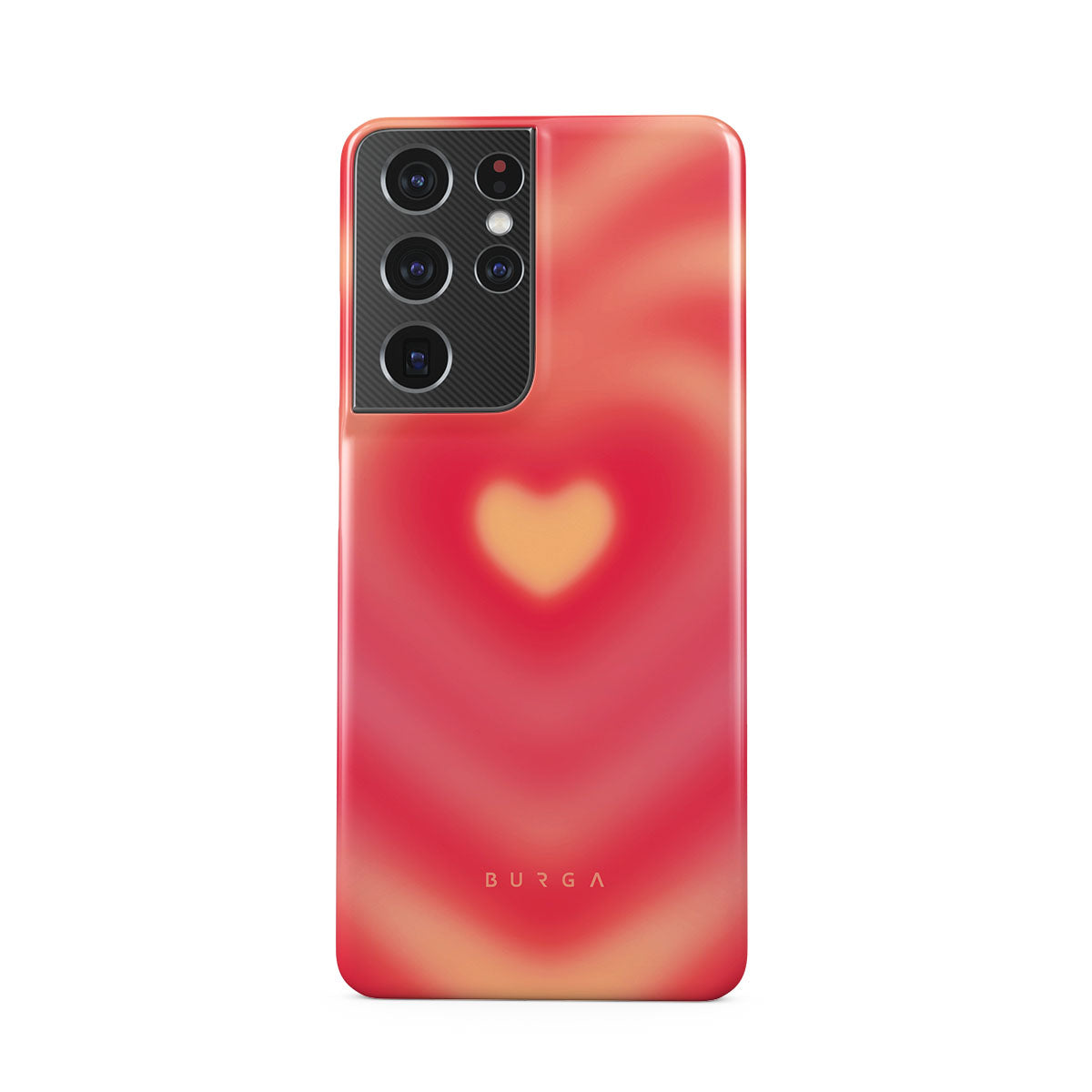 Feel the warmth of Awakening. With its glowing pink-orange shades and a heart at the center, this design is an emblem of one's inner essence. The Awakening Samsung Galaxy S21 Ultra phone case design reminds us of the soul's luminous rebirth, capturing the spirit of the Aura Collection and igniting the magic within.