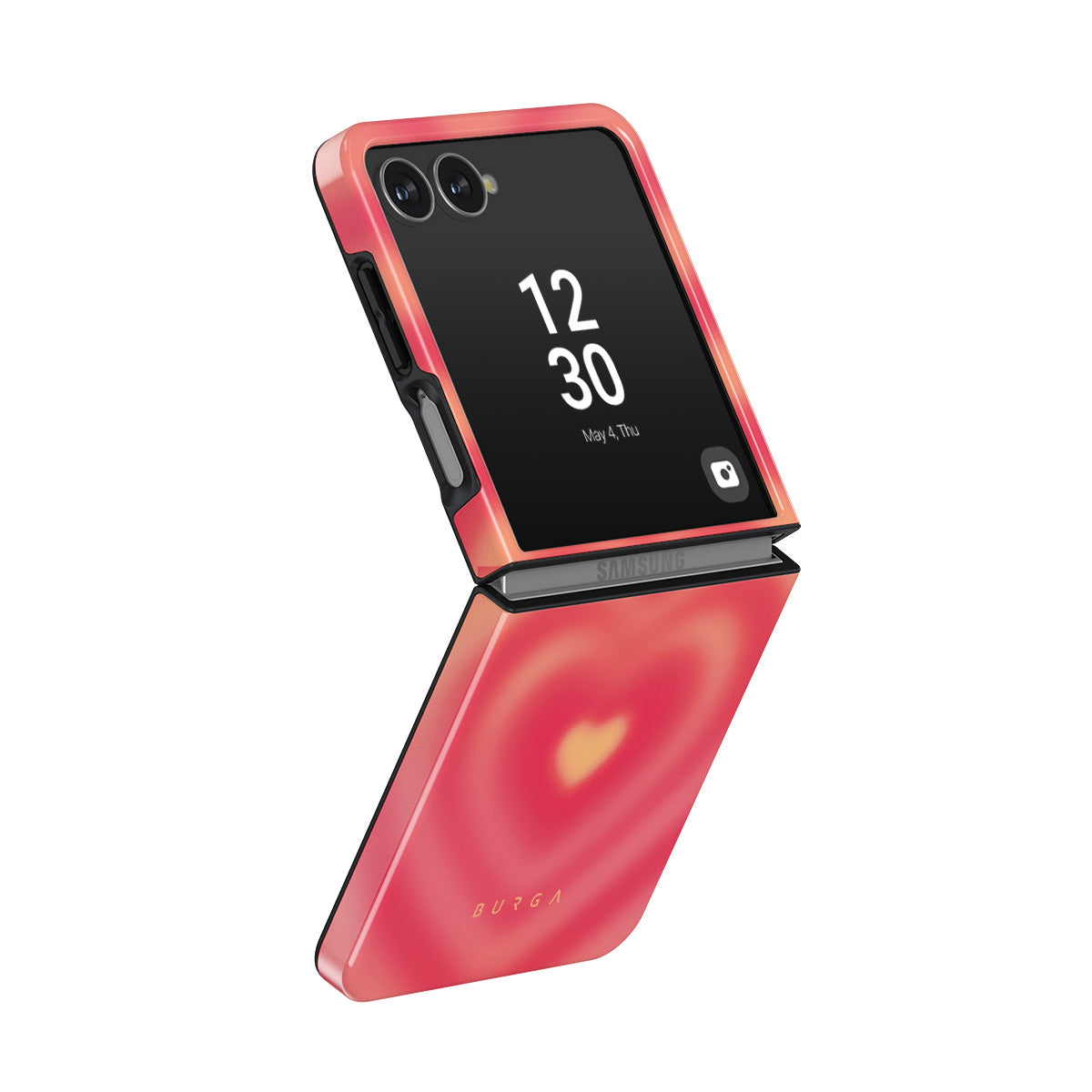 Feel the warmth of Awakening. With its glowing pink-orange shades and a heart at the center, this design is an emblem of one's inner essence. The Awakening Samsung Galaxy Z Flip 7 phone case design reminds us of the soul's luminous rebirth, capturing the spirit of the Aura Collection and igniting the magic within.