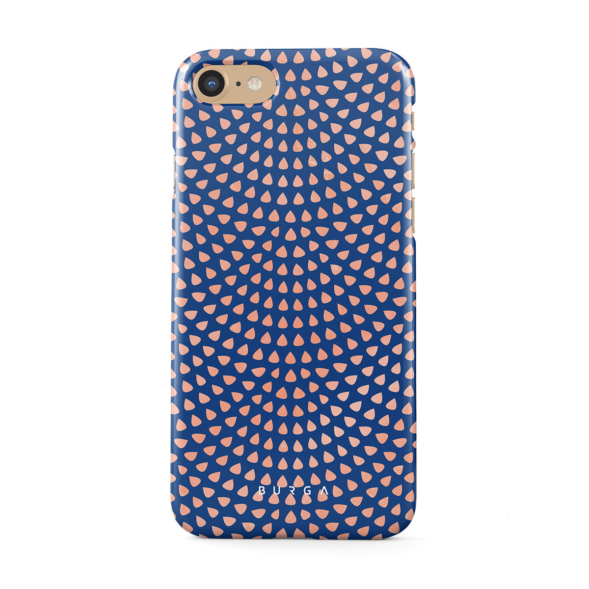 Rose gold teardrops meet a deep shade of blue in our Azure Waters iPhone SE (2020) phone case and create the duo worth taking with you every evening out. Add a touch of strictness with the symmetrical teardrops pattern paving the way and keeping your phone out of harm's way with the case that is as protective as it is beautiful.