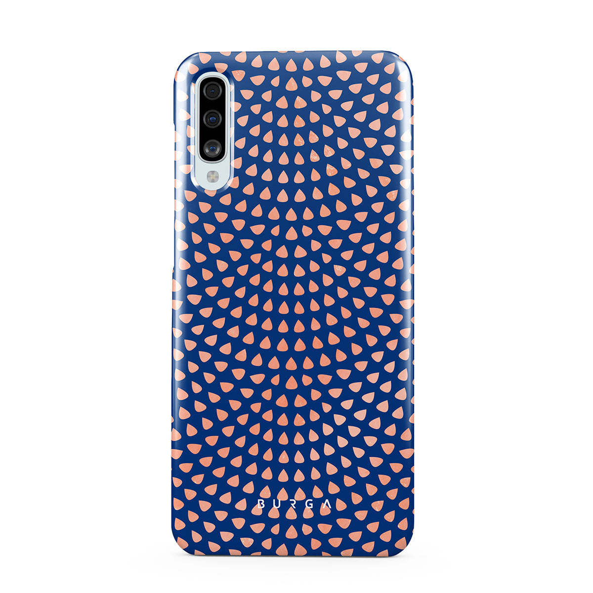 Rose gold teardrops meet a deep shade of blue in our Azure Waters Samsung Galaxy A50 phone case and create the duo worth taking with you every evening out. Add a touch of strictness with the symmetrical teardrops pattern paving the way and keeping your phone out of harm's way with the case that is as protective as it is beautiful.