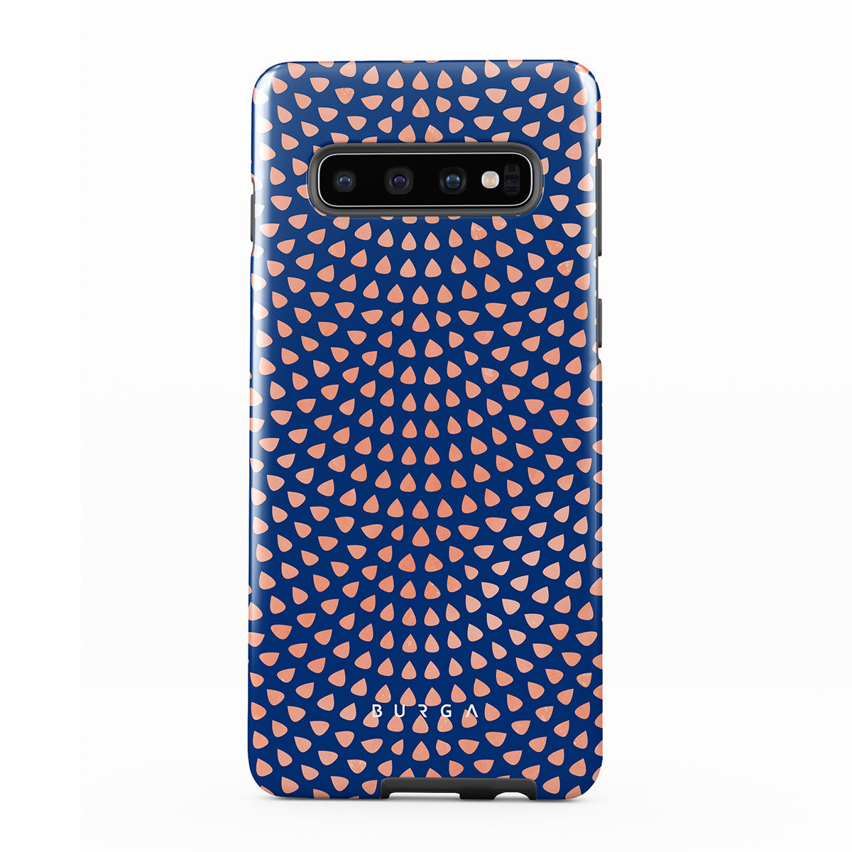 Rose gold teardrops meet a deep shade of blue in our Azure Waters Samsung Galaxy S10 4G phone case and create the duo worth taking with you every evening out. Add a touch of strictness with the symmetrical teardrops pattern paving the way and keeping your phone out of harm's way with the case that is as protective as it is beautiful.
