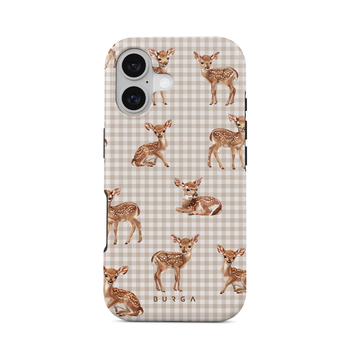 Gentle deers, frozen in time on a field of nostalgia, invite you to rediscover the playful innocence of quiet afternoons in the shade of old trees. Meet our Bambi iPhone 17 phone case design.