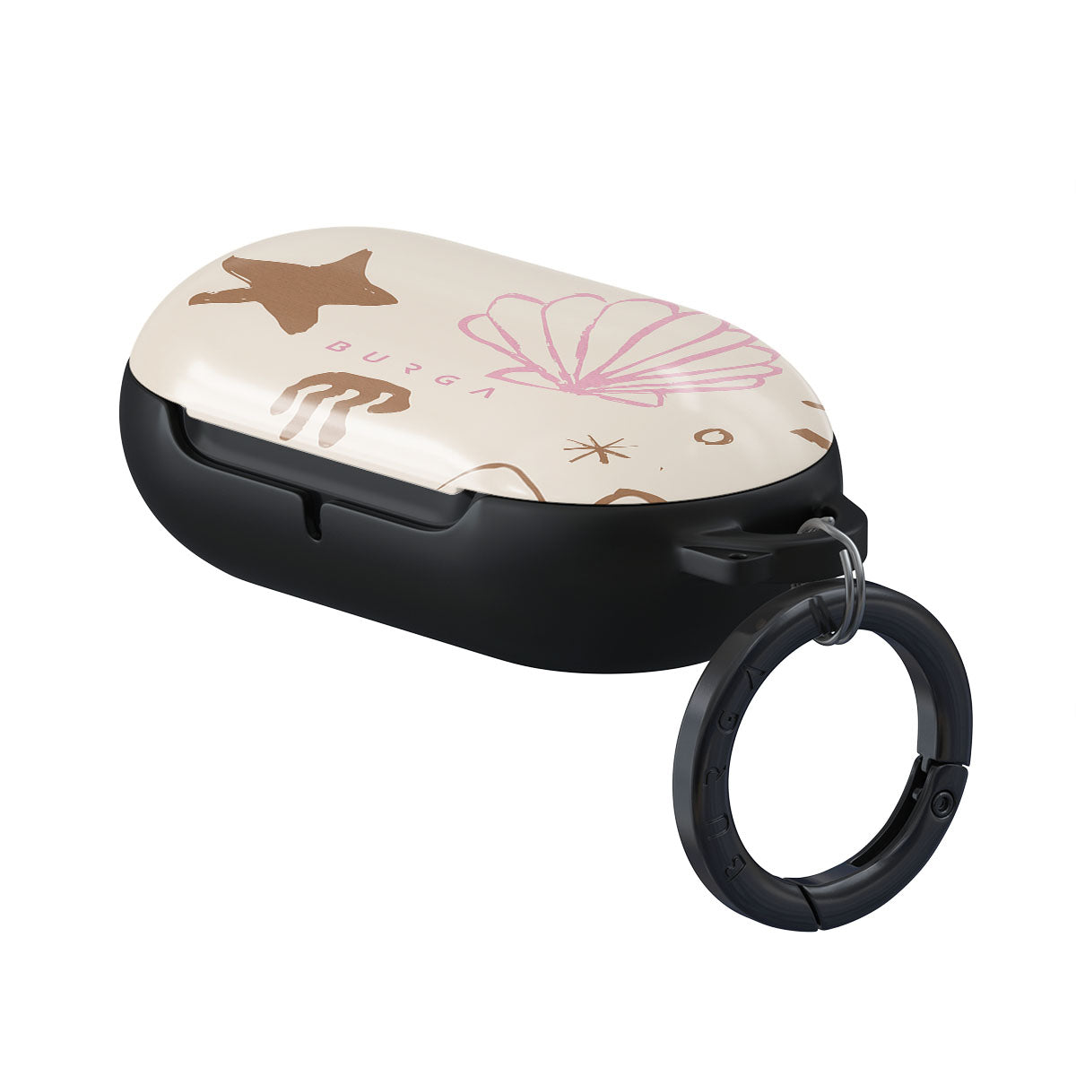 Our Beach Games Samsung Galaxy Buds Plus case cover features a delightful design inspired by seaside treasures, including cute starfish, pink seashells, and playful wave patterns on a sandy background. This beach-themed pattern captures the essence of a fun day at the shore, evoking the joy of discovering beautiful ocean gems.
