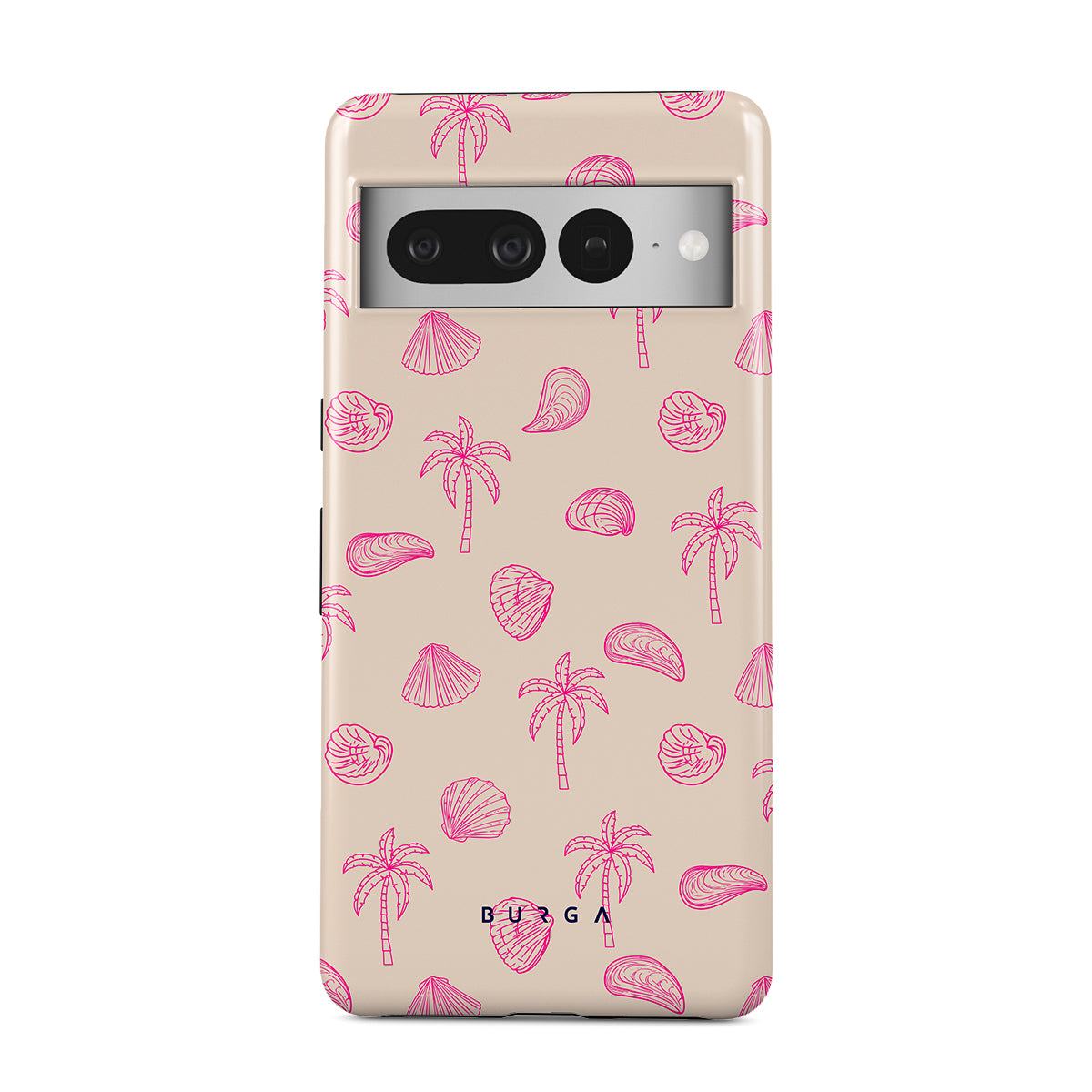 Lovely, beachy, and pink is what we can say about our Beach Please Google Pixel 7 Pro phone case design. The playful pattern of palms and seashells will look cute in your summer selfies. Add that playful touch to your everyday life and keep your phone safe from scratches the sand can make!
