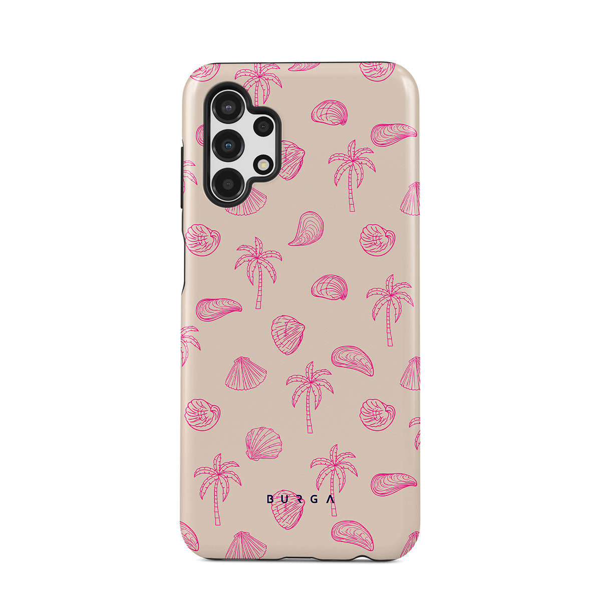 Lovely, beachy, and pink is what we can say about our Beach Please Samsung Galaxy A13 4G phone case design. The playful pattern of palms and seashells will look cute in your summer selfies. Add that playful touch to your everyday life and keep your phone safe from scratches the sand can make!