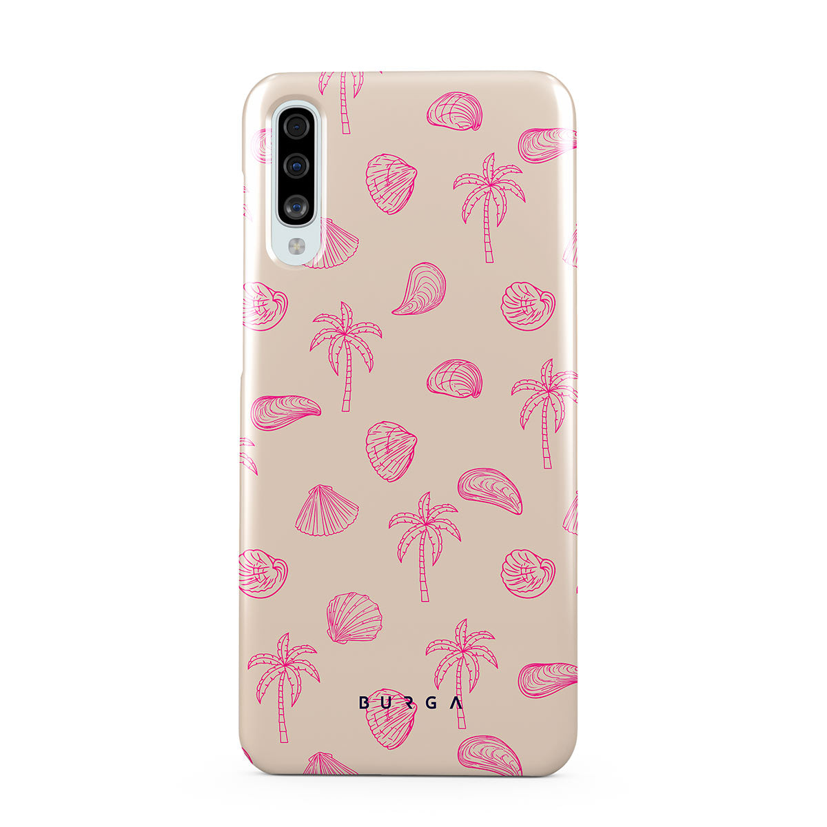 Lovely, beachy, and pink is what we can say about our Beach Please Samsung Galaxy A50 phone case design. The playful pattern of palms and seashells will look cute in your summer selfies. Add that playful touch to your everyday life and keep your phone safe from scratches the sand can make!