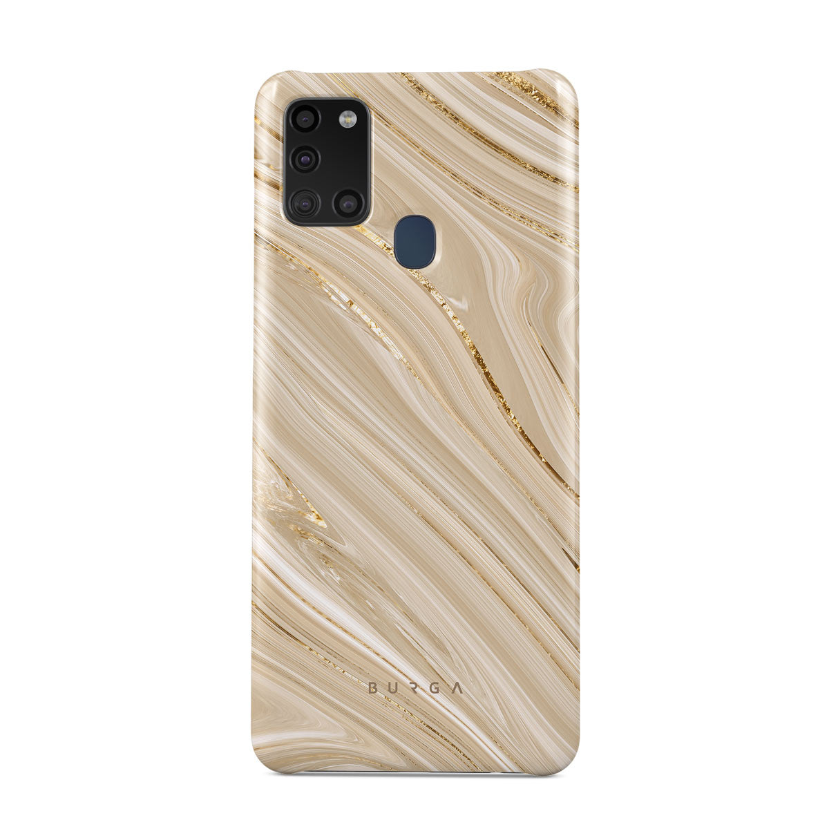 The Full Glam Samsung Galaxy A21s 4G phone case exudes elegance and softness in the beige color scheme with golden accents. The delicate design of the phone case will enhance your style and keep your phone safe and sound while doing that.