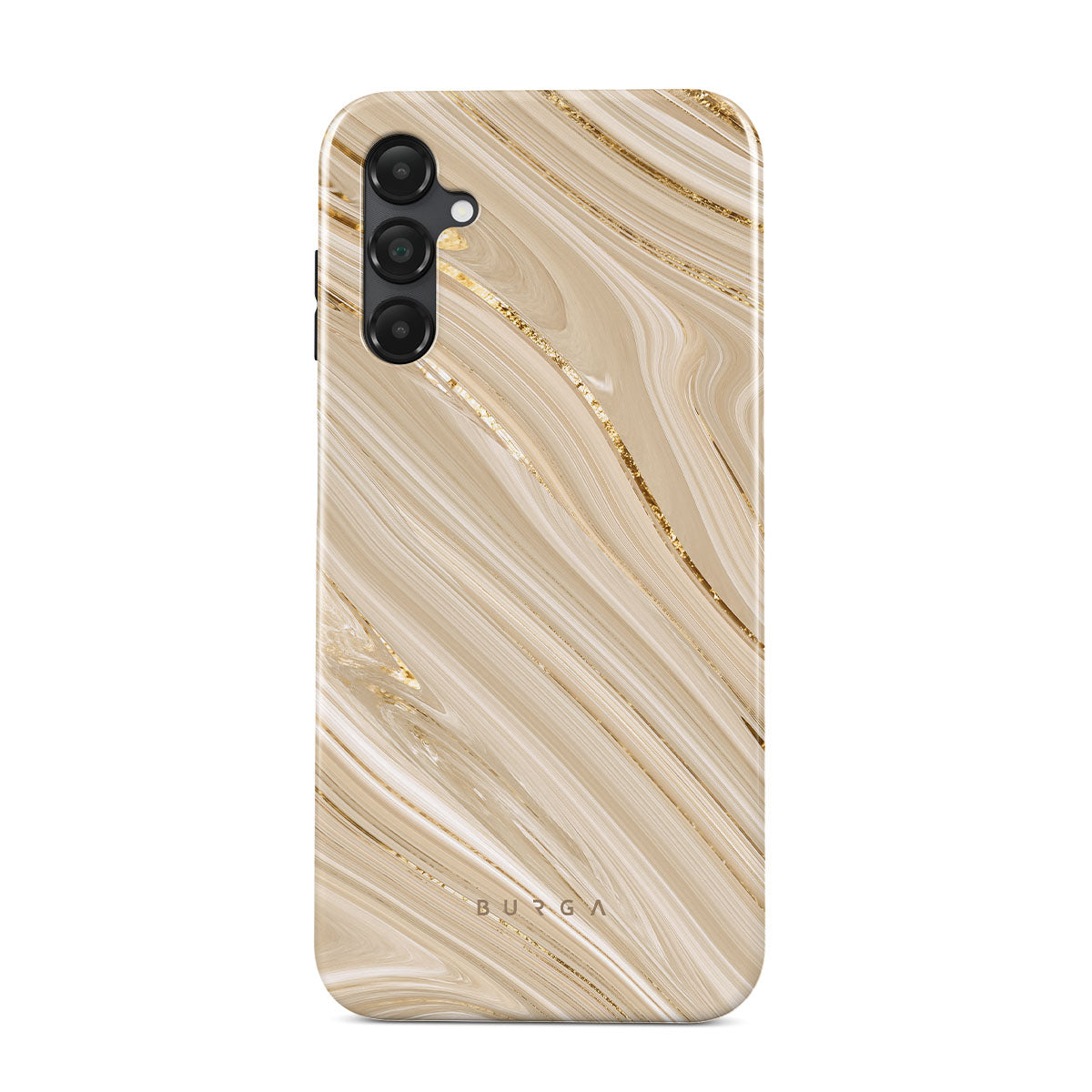The Full Glam Samsung Galaxy A25 phone case exudes elegance and softness in the beige color scheme with golden accents. The delicate design of the phone case will enhance your style and keep your phone safe and sound while doing that.