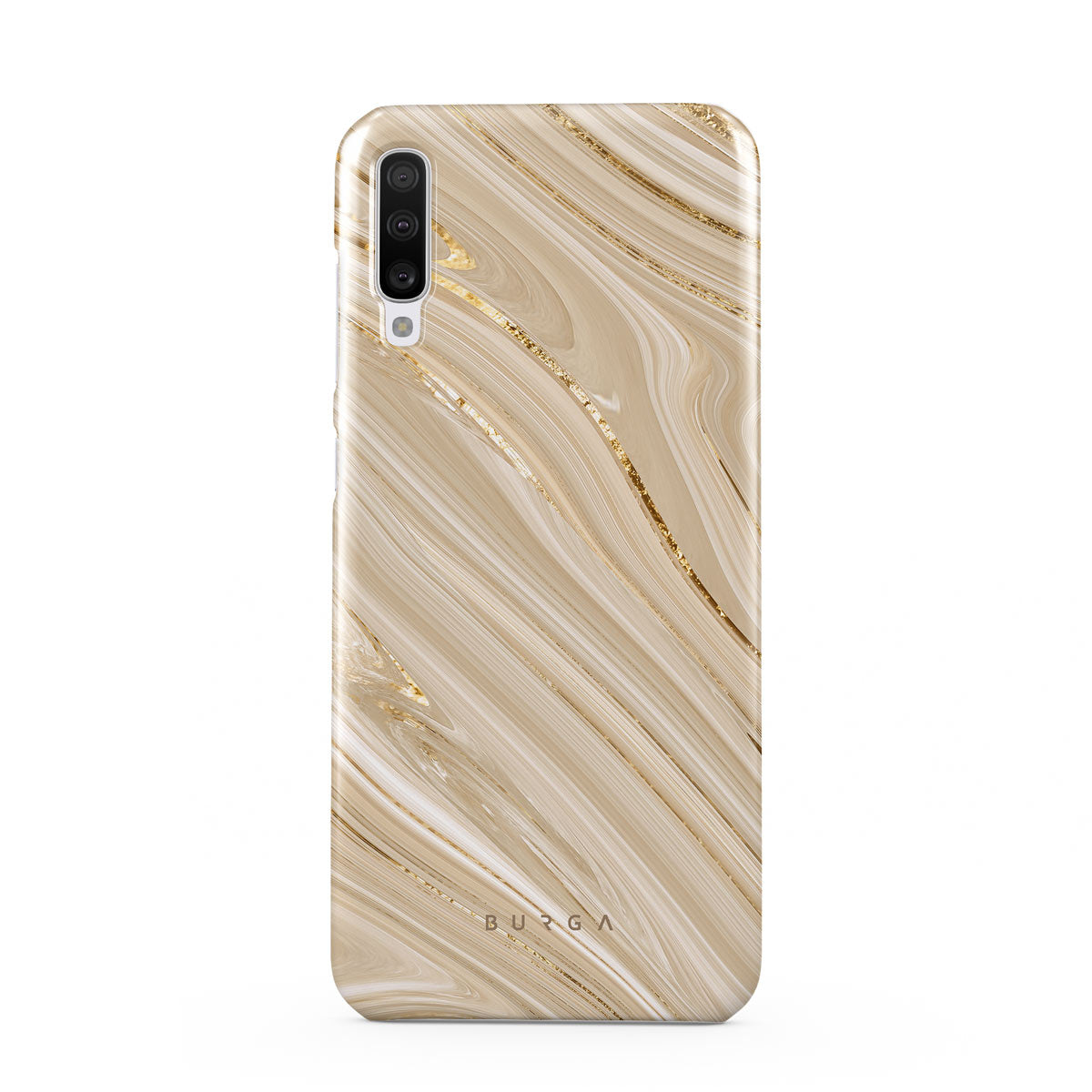 The Full Glam Samsung Galaxy A70 phone case exudes elegance and softness in the beige color scheme with golden accents. The delicate design of the phone case will enhance your style and keep your phone safe and sound while doing that.