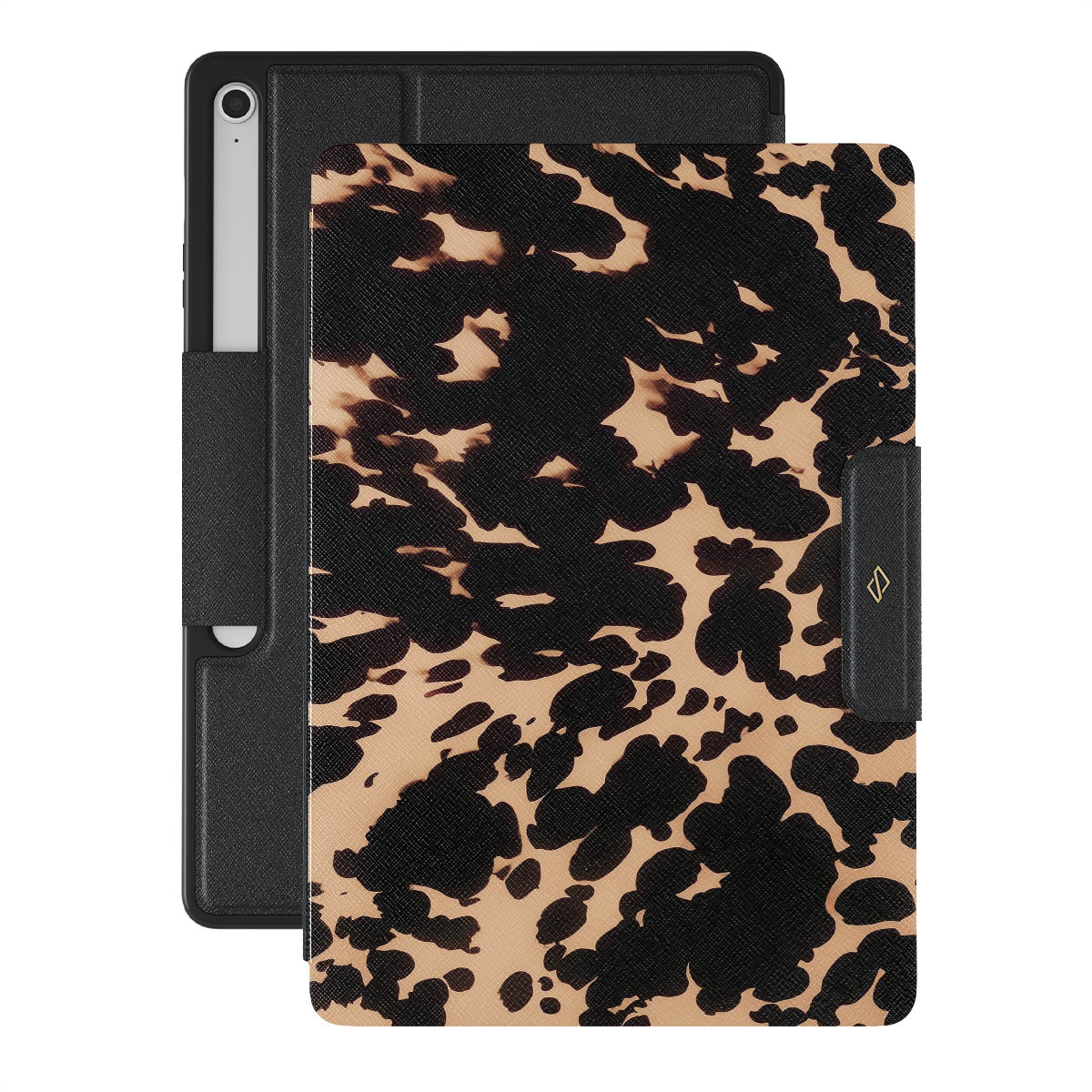 Bold and fearless, just like your return to the office. Dark coffee shapes stretch across a soft beige-yellow canvas, blending wild energy with refined style. Our Betty Samsung Galaxy Tab S10+ FE folio case design is perfect for making a statement as you return to the spotlight.