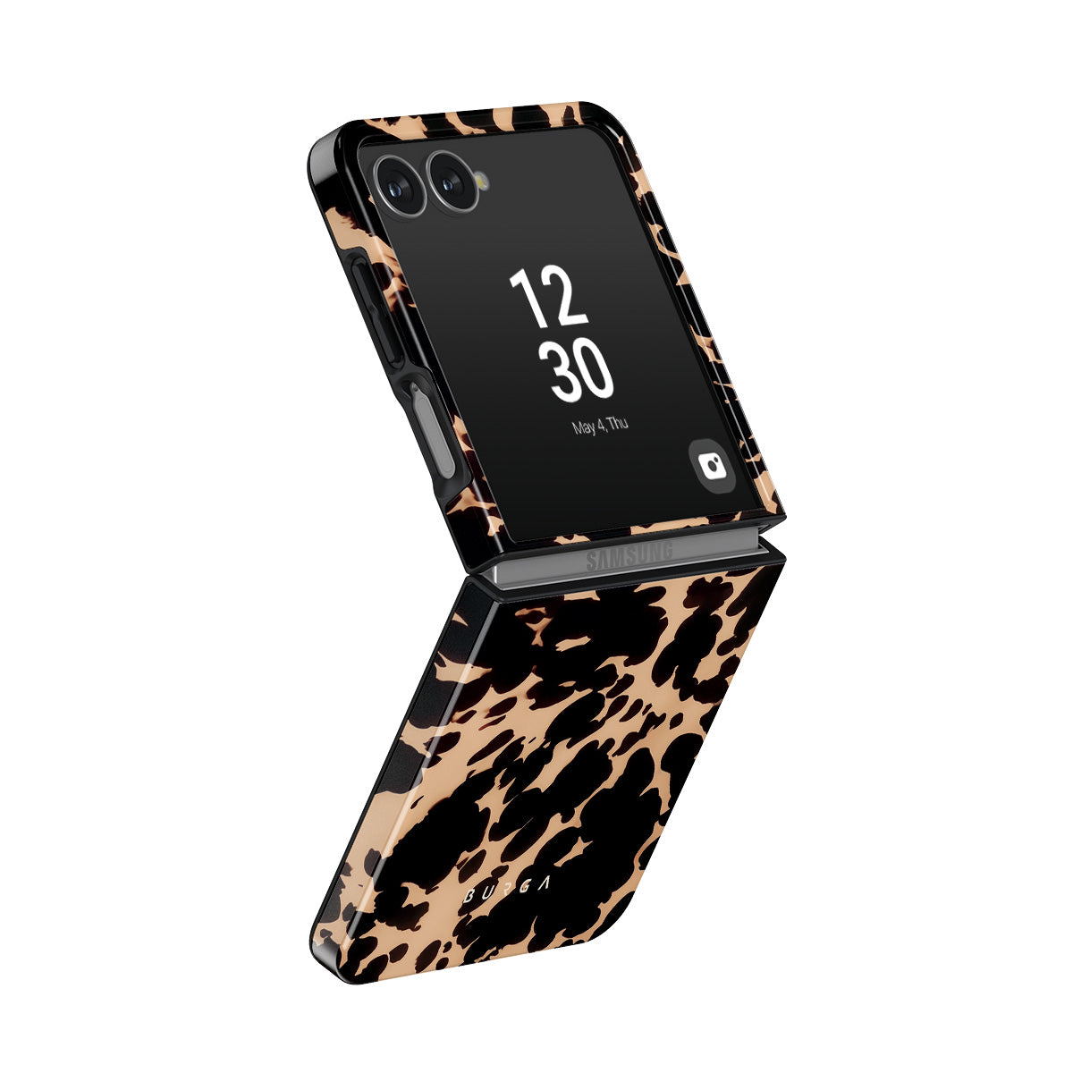 Bold and fearless, just like your return to the office. Dark coffee shapes stretch across a soft beige-yellow canvas, blending wild energy with refined style. Our Betty Samsung Galaxy Z Flip 7 phone case design is perfect for making a statement as you return to the spotlight.