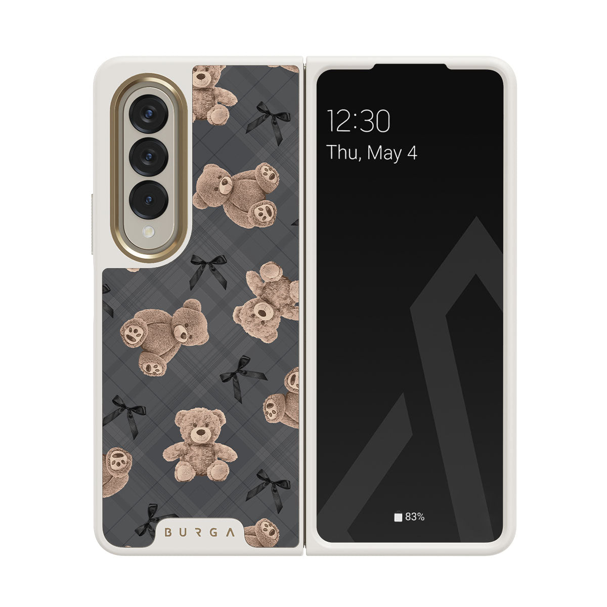 A design blending innocence and sophistication. With teddy bears and a chic gray background, BFF is a throwback to the comforting nostalgia of youth, updated with a touch of modern glam. This design will make you and your Samsung Galaxy Z Fold 4 phone case inseparable companions, just like the best of friends.