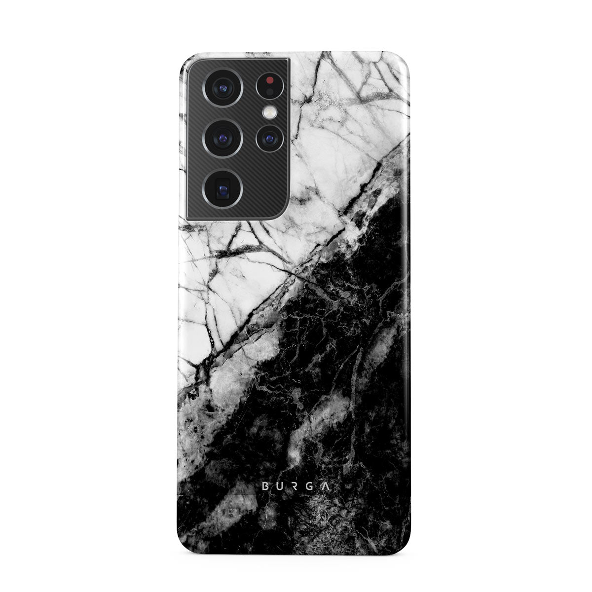 Samsung Galaxy S21 Ultra phone case. The black and white marble case offers harmony between beauty and protection; there is no need to choose only one.