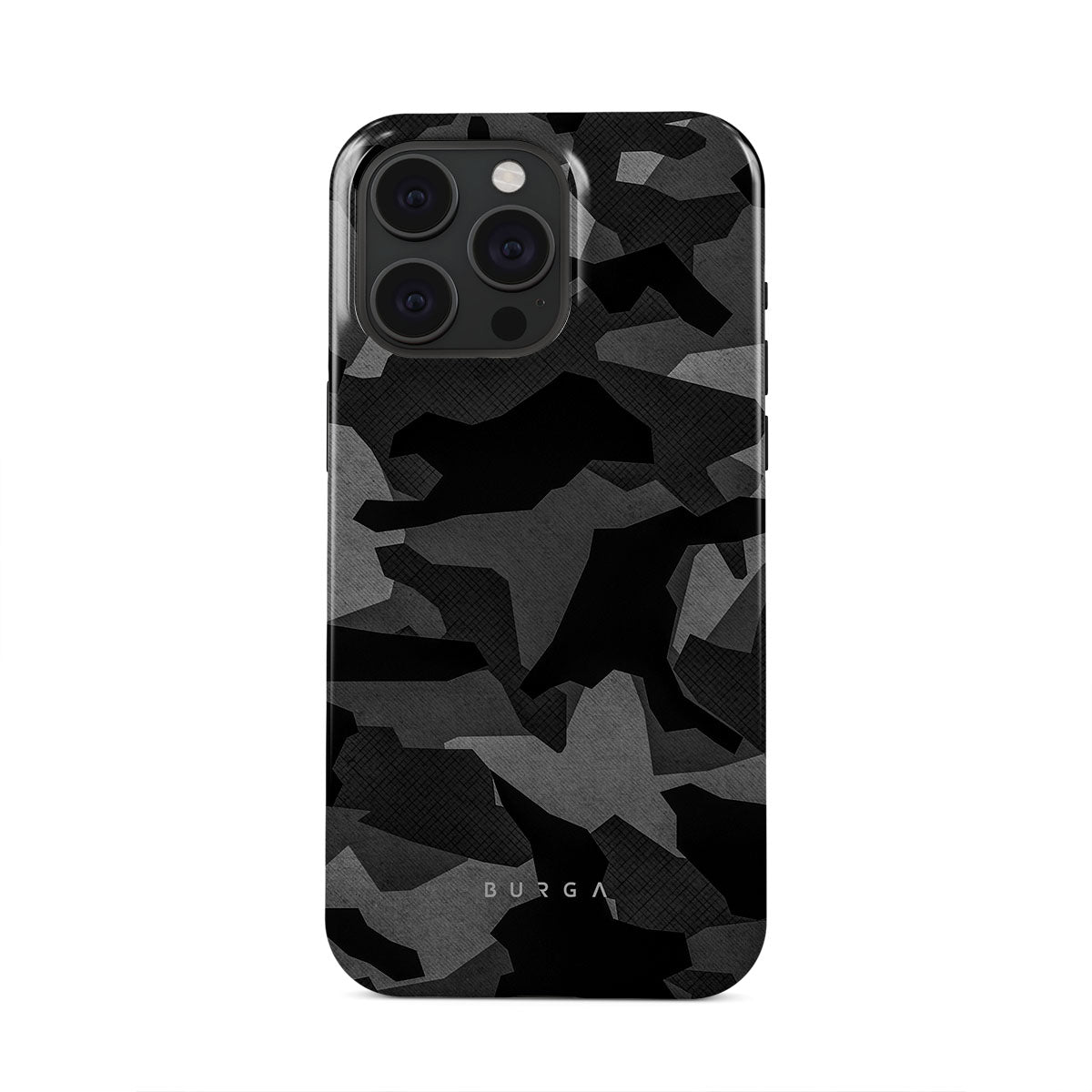 Sometimes, all you need is a possibility to blend into nature. With our Night Black Camo iPhone 15 Pro phone case, use black camouflage as a way to express your curious side or blend in with the surroundings. A stylish accessory can offer heavy-duty protection too!