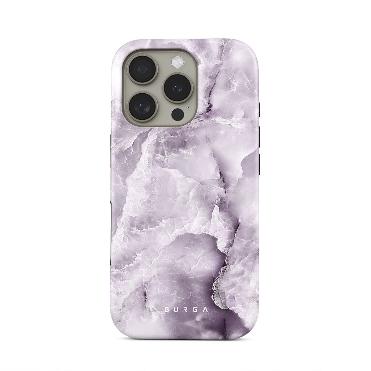 The gray violet-colored Black Currant iPhone 16 Pro phone case showcases a soft marble design that will add a touch of luxury to your style. The color itself represents the future and dreams, yet the nature of it offers a calming effect. Keep a piece of serenity in your hands.