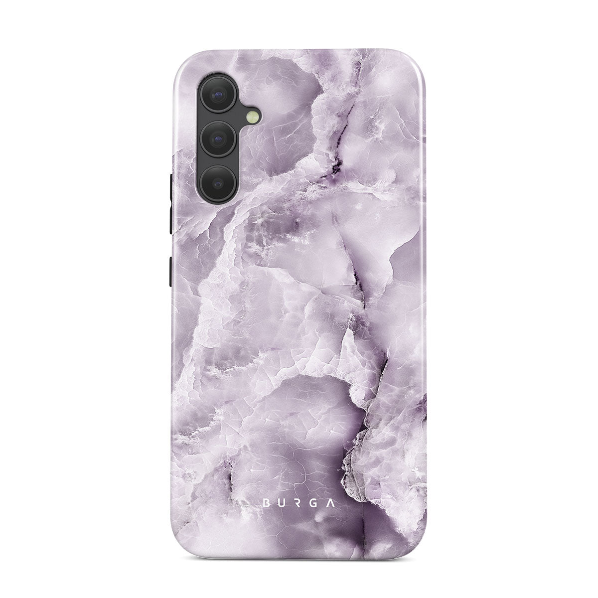 The gray violet-colored Black Currant Samsung Galaxy A34 phone case showcases a soft marble design that will add a touch of luxury to your style. The color itself represents the future and dreams, yet the nature of it offers a calming effect. Keep a piece of serenity in your hands.