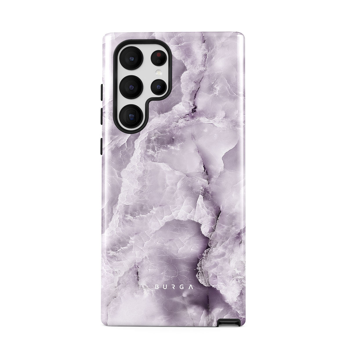 The gray violet-colored Black Currant Samsung Galaxy S22 Ultra phone case showcases a soft marble design that will add a touch of luxury to your style. The color itself represents the future and dreams, yet the nature of it offers a calming effect. Keep a piece of serenity in your hands.
