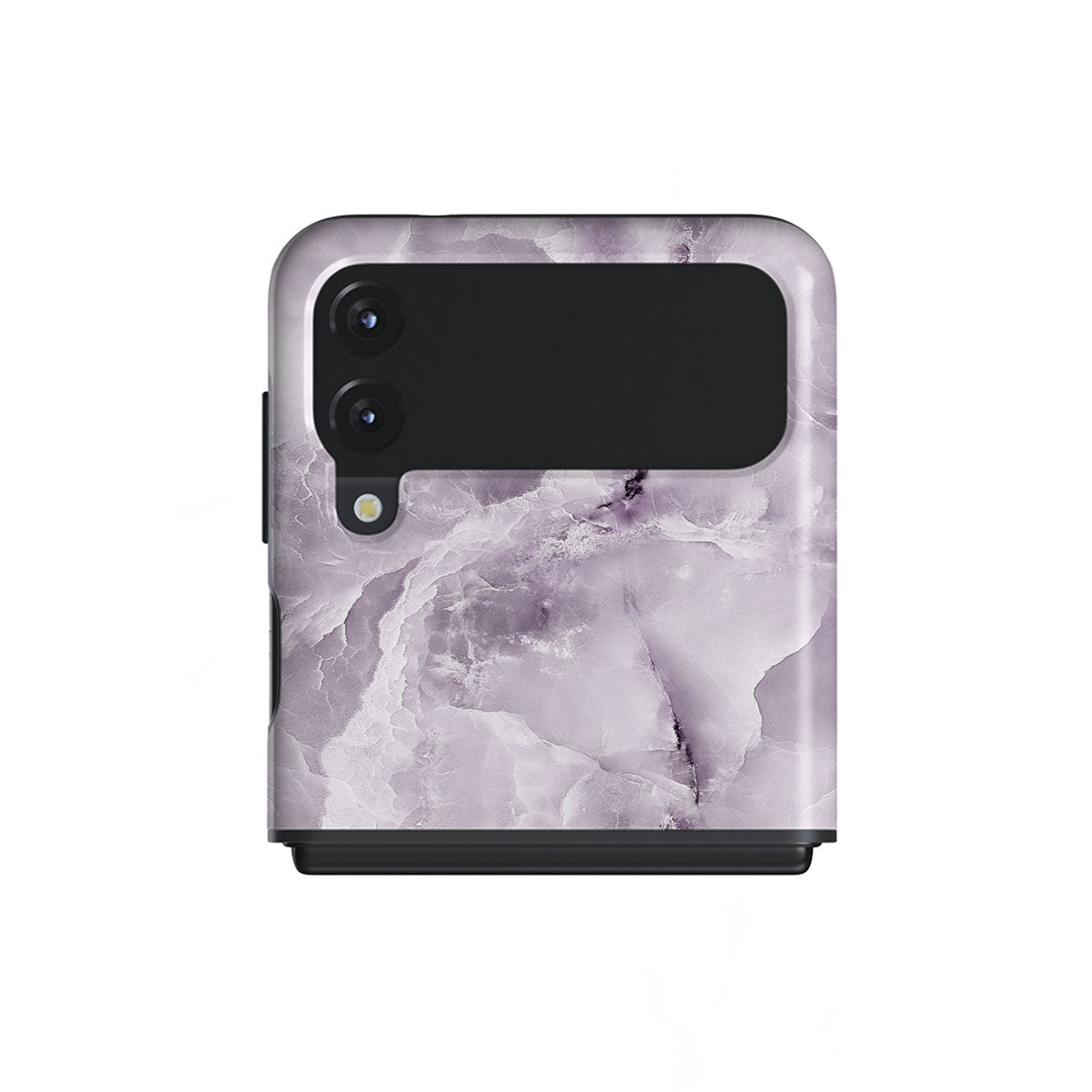 The gray violet-colored Black Currant Samsung Galaxy Z Flip 3 phone case showcases a soft marble design that will add a touch of luxury to your style. The color itself represents the future and dreams, yet the nature of it offers a calming effect. Keep a piece of serenity in your hands.